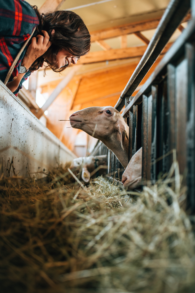 Denk dir jetzt noch 100% Leidenschaft dazu! Voilà: Das ist ein Nachmittag mit Anaïs. Wenn irgendjemand von tiergerechter Schafzucht etwas versteht, dann sie. „I love my sheep“, war der Satz, den wir an diesem Tag von ihr am häufigsten gehört haben. Sie hat mit den Schafen gekuschelt, sie gestreichelt und mit ihnen gespielt. Ihre Schafe werden übrigens ausschließlich zur Milchgewinnung genutzt und nicht geschlachtet.