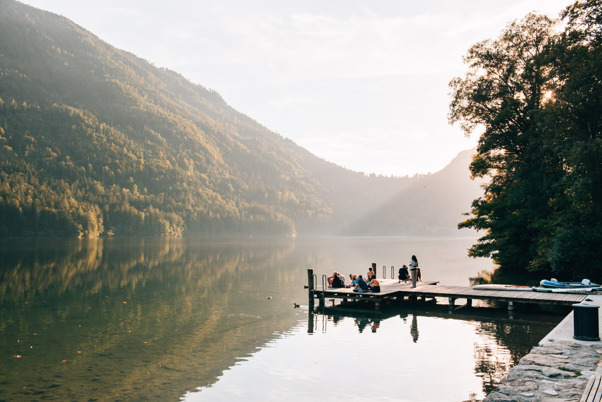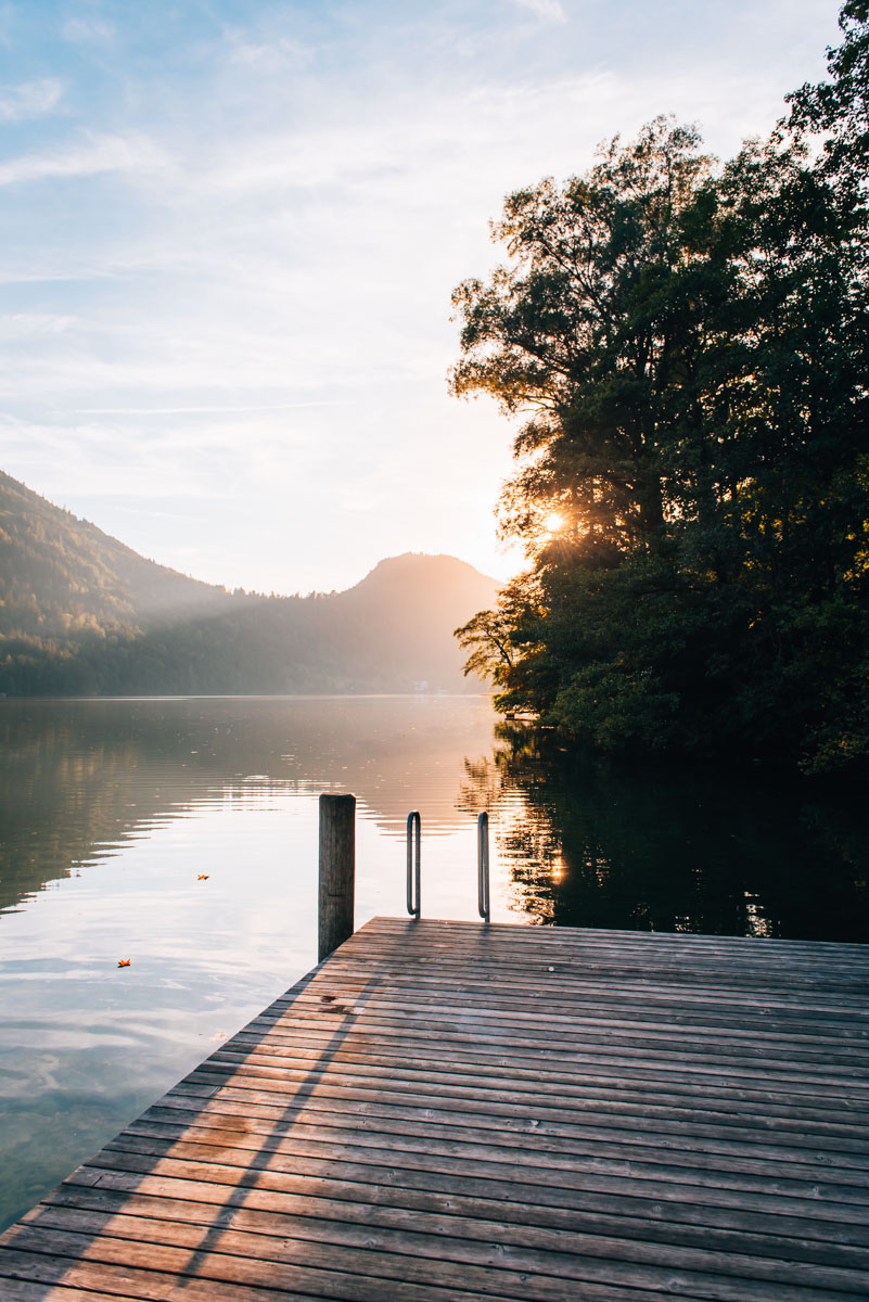 Ob Sonnenauf- oder -untergang – die Lichtstimmung ist frühmorgens oder abends am Lunzer See einfach am schönsten. Ein schönes Plätzchen, um die ersten oder letzten Sonnenstrahlen einzufangen, ist der öffentliche Badesteg, der sich am östlichen Ende des Nordufers befindet. Hier kannst du nicht nur für einen kurzen Sprung in den See vorbeischauen, sondern der Ort bietet sich auch perfekt an, um den Sonnenauf- oder -untergang hier zu erleben.
