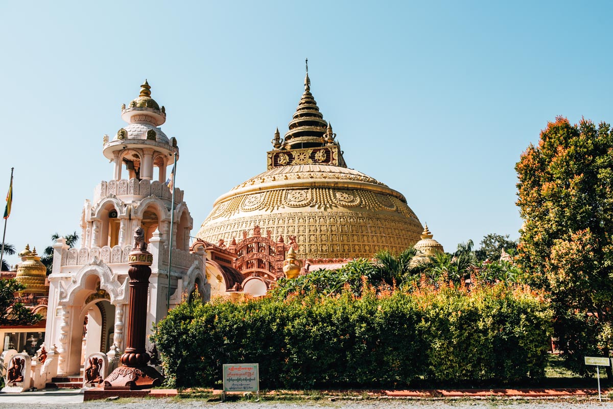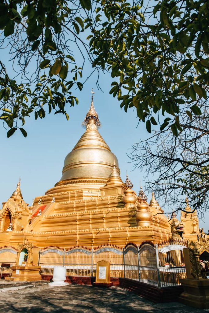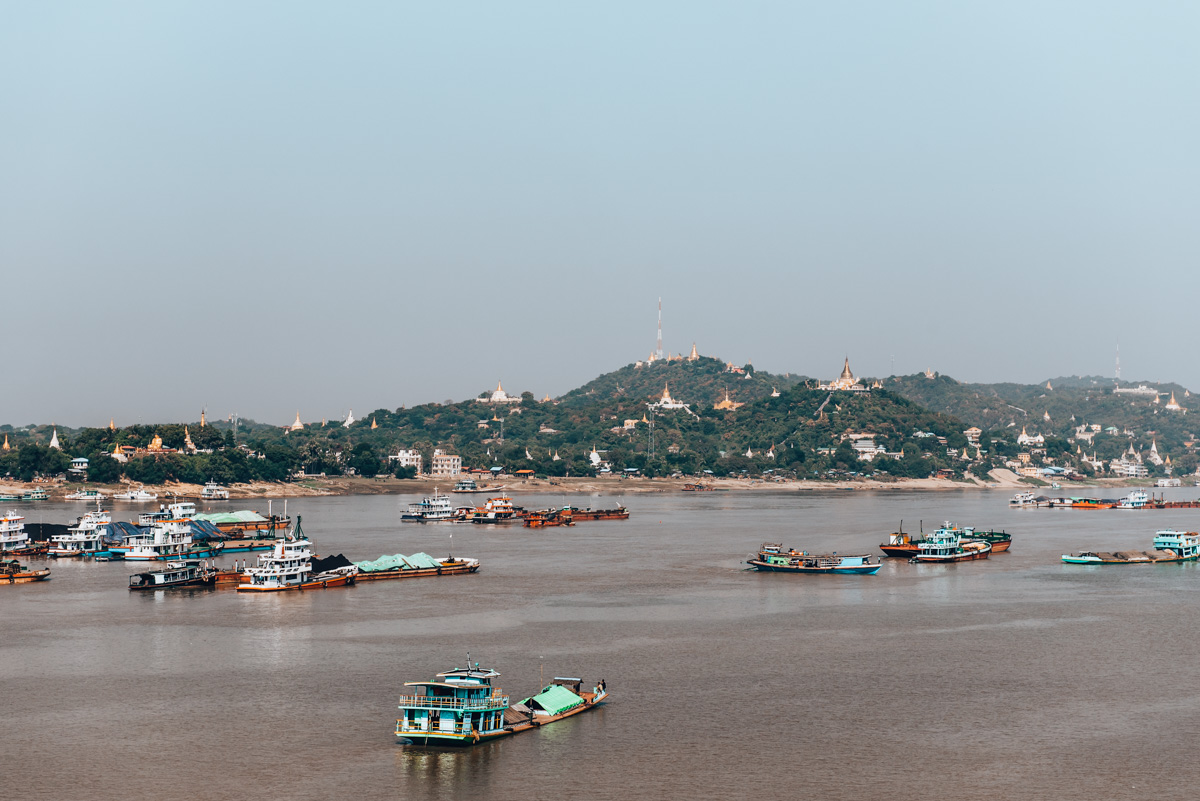 Sagaing liegt etwa 20 Kilometer südwestlich von Mandalay. An diesem hügeligen Ort stehen – wie könnte es in Myanmar auch anders sein – unzählige Pagoden. Über 600 Stupas sollen es sein. Wenn du von Mandalay nach Sagaing fährst, wird dein Fahrer bestimmt an der Brücke halten. Von dort hast du einen schönen Blick auf die grüne Landschaft, aus der die Pagoden emporragen.