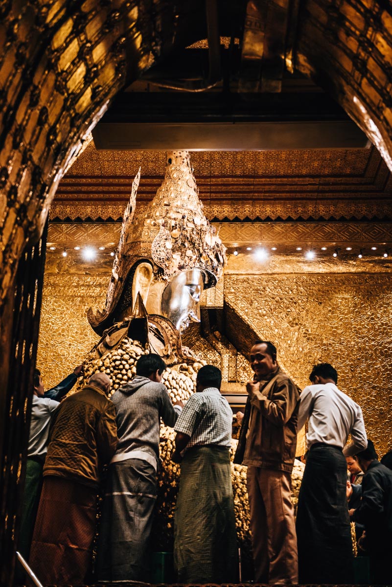 Der bittere Beigeschmack: Genau wie beim Golden Rock werden auch bei der Mahamuni-Pagode ausschließlich Männer direkt zu Buddha gelassen. Frauen müssen hinter der Absperrung bleiben.
