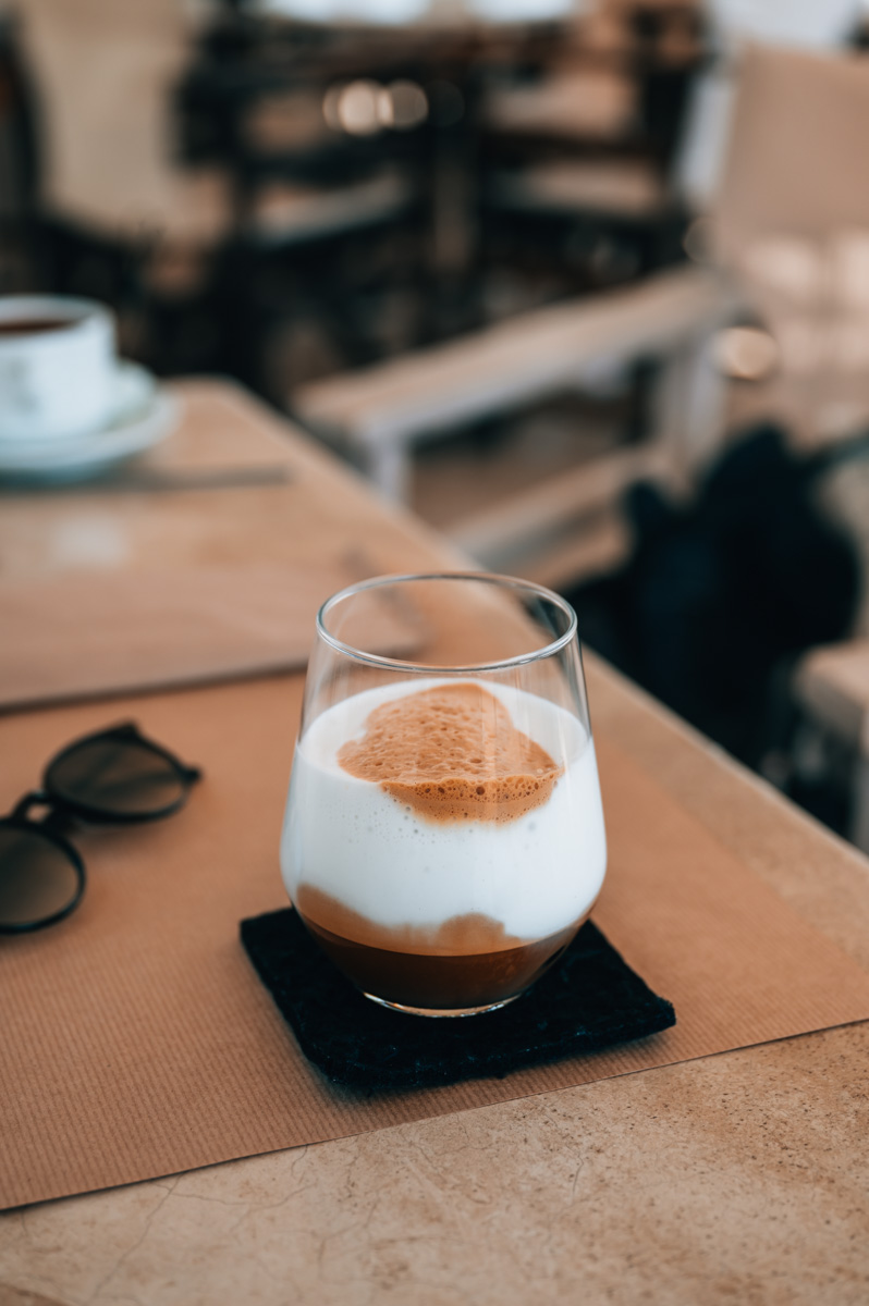 Unser Tipp: Mach es dir im Café Lithos bequem, genieße einen Freddo Cappuccino und dazu den Blick auf das Meer und die sanfte Brise – herrlich!