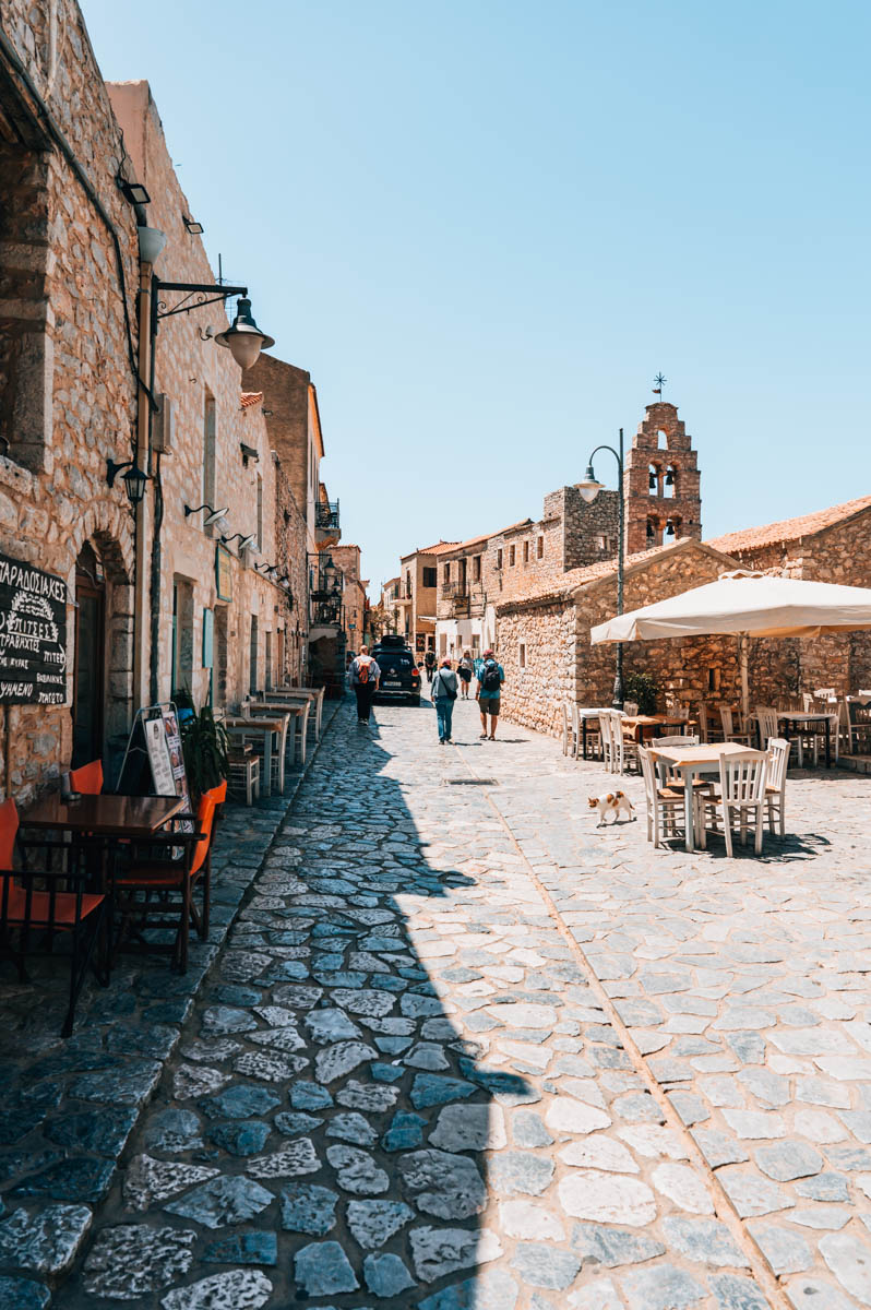Areopoli gilt als Hauptort der Mani-Halbinsel – und ist so ganz nebenbei einer der schönsten Orte der Region, wenn man uns fragt. Areopoli thront auf einer Art Plateau, einige hundert Meter von der Küste entfernt. Du darfst dich hier auf eine sehr charmante, mittelalterliche Altstadt mit steinernen Häusern und schmalen Gässchen freuen.