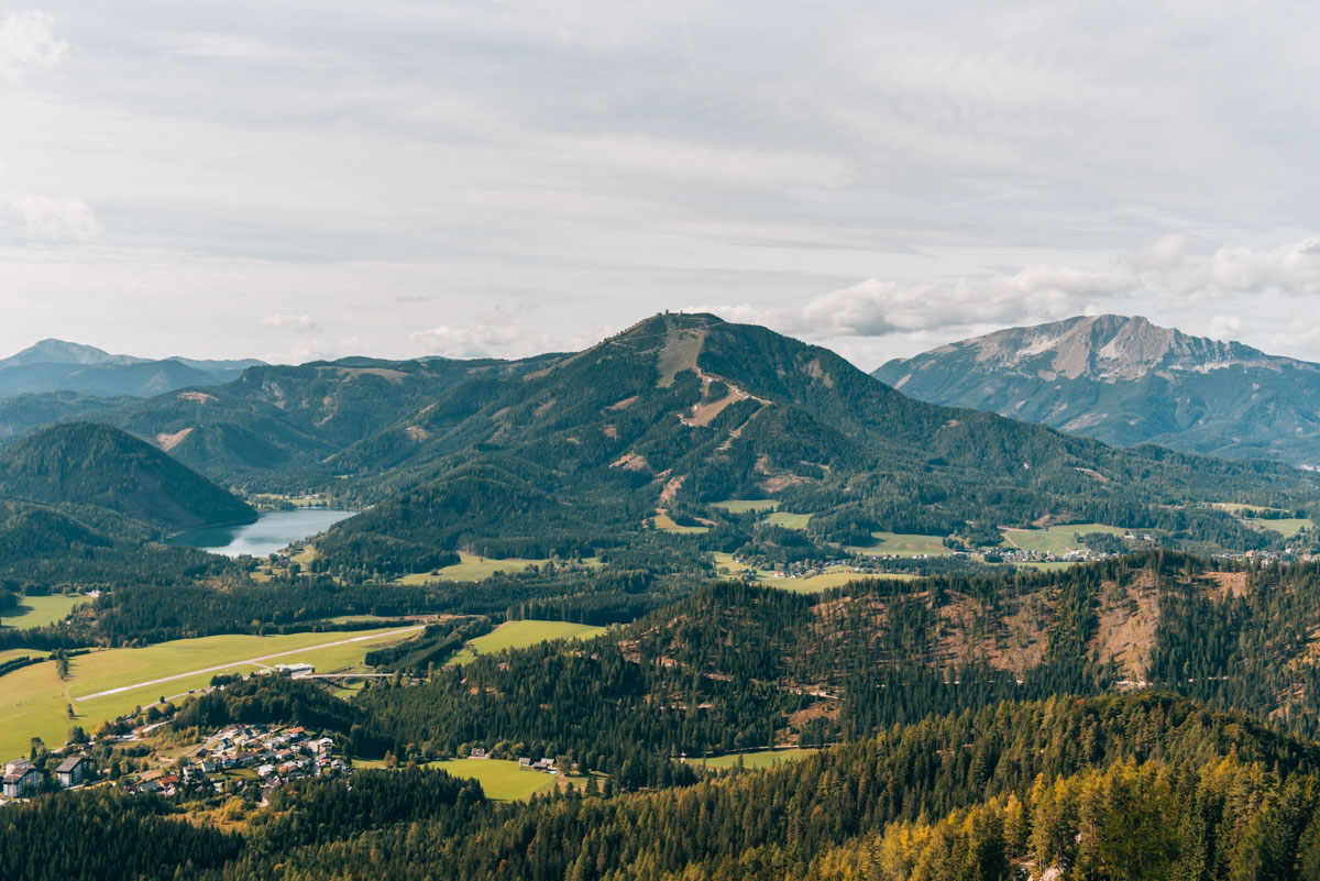 Die 1.267 Meter hohe Bürgeralpe ist sozusagen Mariazells Hausberg. Vom Ortszentrum in Mariazell kannst du mit dem Bürgeralpe Express, einer Gondelbahn, in nur wenigen Minuten auf den Gipfel fahren. Alternativ kannst du den Gipfel natürlich auch zu Fuß erreichen – die meisten (uns eingeschlossen) fahren aber ganz bequem mit der Seilbahn.