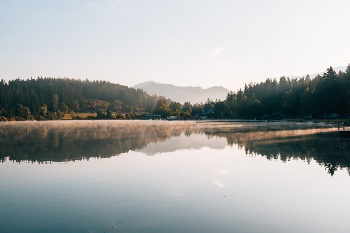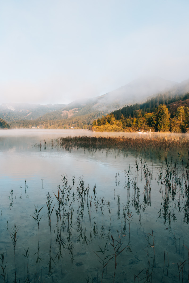 Der See kann einmal zu Fuß umrundet werden. Viele (auch wir) starten diesen Rundweg vom Parkplatz der Wuchtlwirtin. Von dort geht es zunächst direkt an der Straße entlang, ehe du dann abzweigst und zum nördlichen Ufer des Hubertussees gelangst.