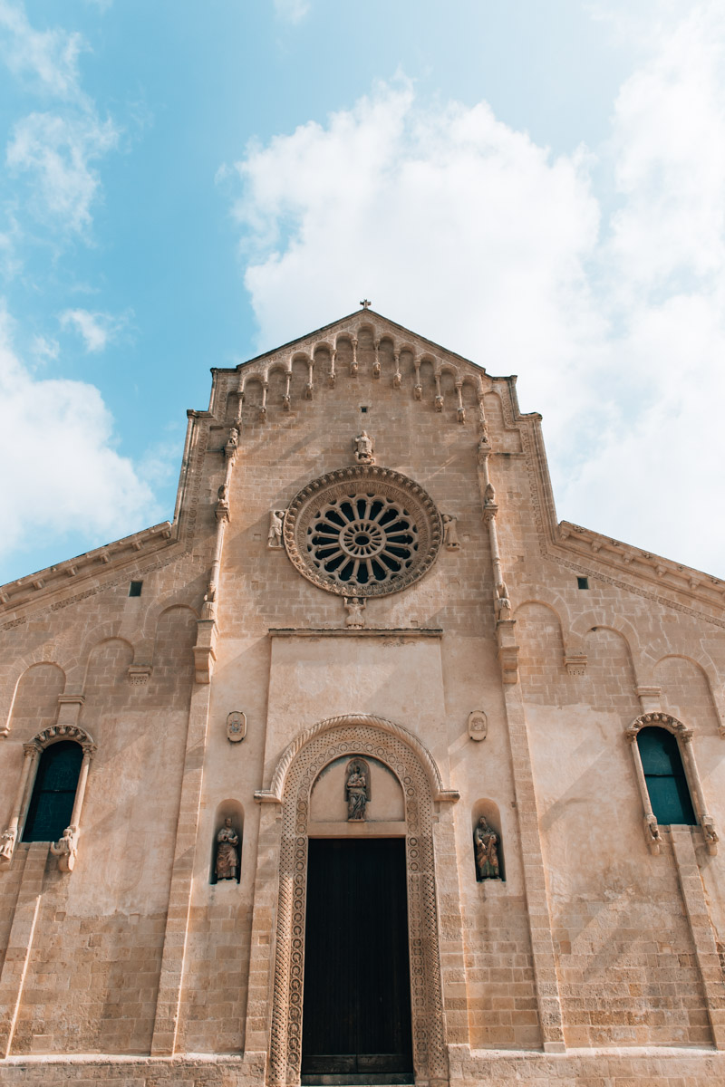 Am höchsten Punkt der Stadt, zwischen den beiden Vierteln Sasso Barisano und Sasso Caveoso, thront die gigantische Kathedrale von Matera.