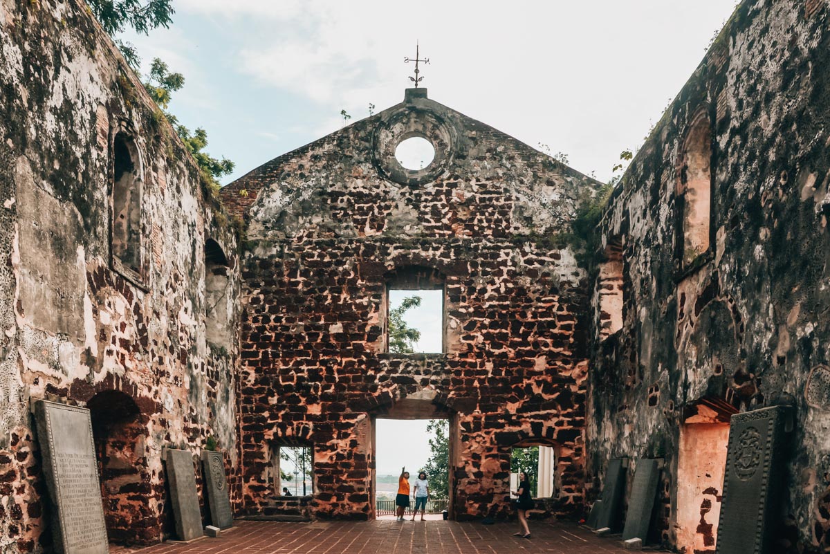 Oben angekommen, erwartet dich zunächst einmal ein schöner Blick über Melaka. Und auf noch etwas darfst du dich freuen: Auf dem St. Paul’s Hill thront nämlich die Ruine der St. Paul’s Church – ein sehr cooles Fotomotiv!