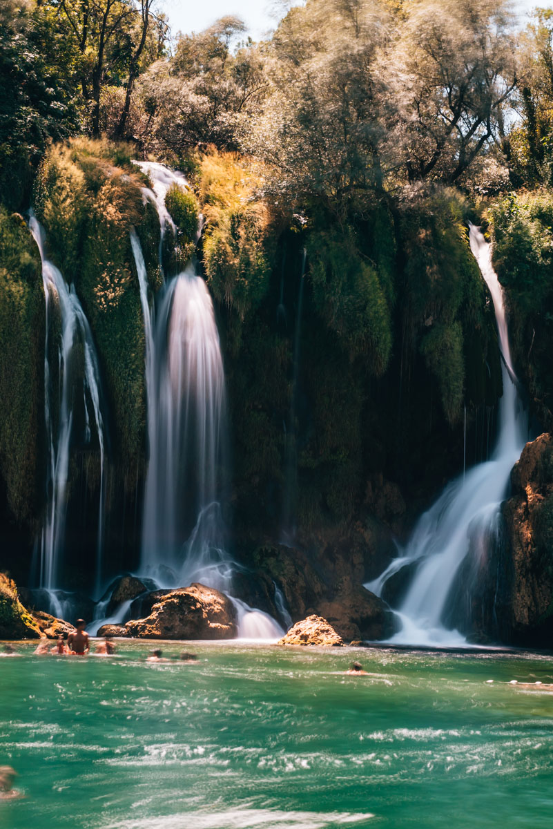 Die Dimensionen sind gigantisch. Etwa 30 Meter stürzt der Fluss Trebižat hier über mehrere Kaskaden und Wasserfälle in die Tiefe. Die Kraft des Wassers ist eindrucksvoll – insbesondere, wenn es gerade viel geregnet hat.