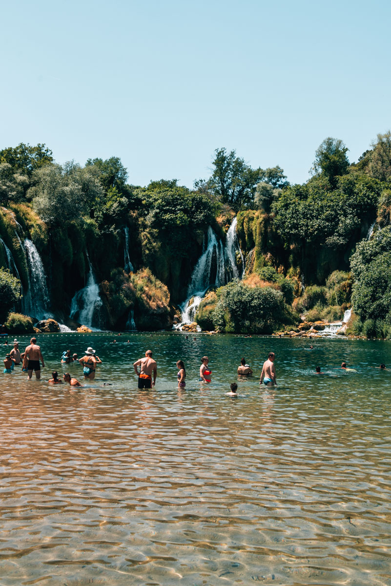 Fluch und Segen gleichermaßen: Man kann an den Wasserfällen schwimmen – genauer gesagt im großen Natur-„Schwimmteich“, in dem sich das herabgestürzte Wasser sammelt. Fluch deshalb, da es dadurch in der Hochsaison an heißen Tagen brechend voll wird.
