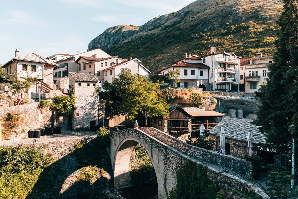 Die prächtige, markante Einbogenbrücke stammt ursprünglich aus dem 16. Jahrhundert. Traurigerweise wurde sie im Krieg in den 90er-Jahren zerbombt und in Schutt und Asche gelegt. Nach dem Krieg wurde die Brücke originalgetreu wiederaufgebaut und ist seither UNESCO-Weltkulturerbe.