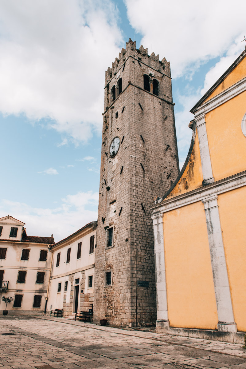 - Hauptplatz mit Kirche Sveti Stjepan: Über das innere Stadttor (Vrata kaštela) führt dich dein Weg zum Hauptplatz, dem Trg Andrea Antico. An diesem vergleichsweise weitläufigen Platz zieht die wichtigste Kirche Motovuns, die Kirche Sveti Stjepan, alle Blicke auf sich. Der Glockenturm kann übrigens erklommen werden. Großartige Panoramablicke garantiert!