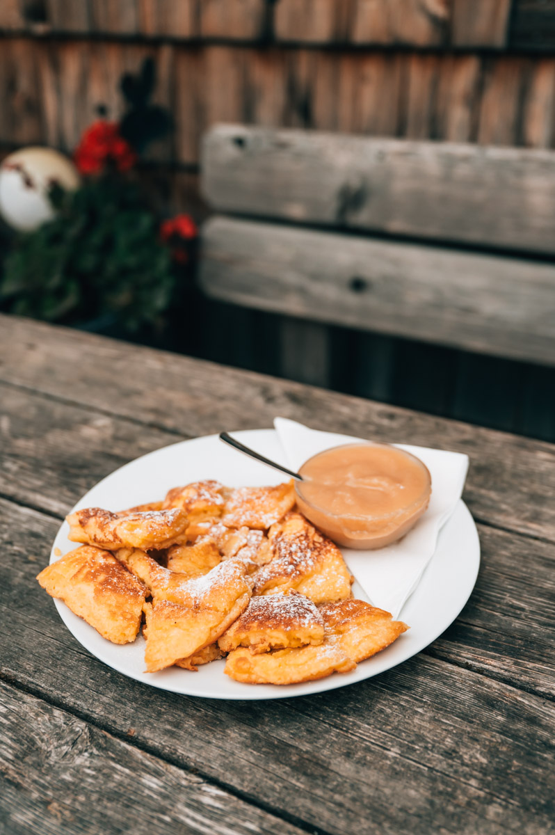 Vor oder nach deiner Wanderung solltest du unbedingt in der sehr empfehlenswerten Hölzler Hütte einkehren. Sie liegt auf 1.535 Metern Seehöhe, eingebettet in die unberührte Natur der Eseslberger Alm. Unser Tipp: Probier den Kaiserschmarrn. Der wird ganz frisch zubereitet (nur wenn genügend Zeit ist) und ist ein absoluter Traum. Der angrenzende Spielplatz ist ideal zum Toben für die Kleinen.