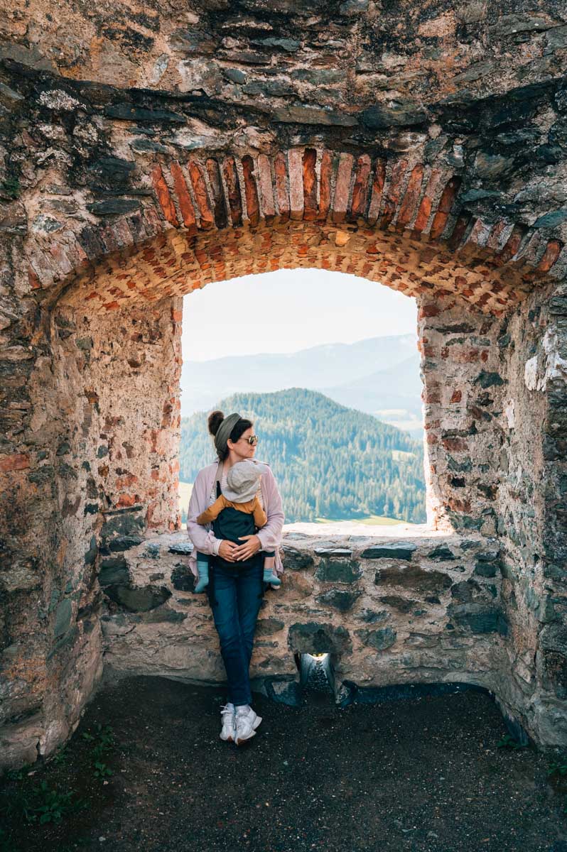 Unser Tipp: Vor der Burgruine befindet sich die dazugehörige und sehr empfehlenswerte Steinschlosshütte. Eine Einkehr können wir wärmstens empfehlen. Die Hütte ist 250 Jahre alt und es gibt kein fließend Wasser, sodass die Speisekarte einfach gehalten ist. Am besten du bestellst ein Stück „Woaza“, eine Art Guglhupf mit Zimt-Rosinen-Füllung. (Das steirische Pendant zum Reindling.) Der Erlös kommt übrigens dem Erhalt der Burgruine zugute.