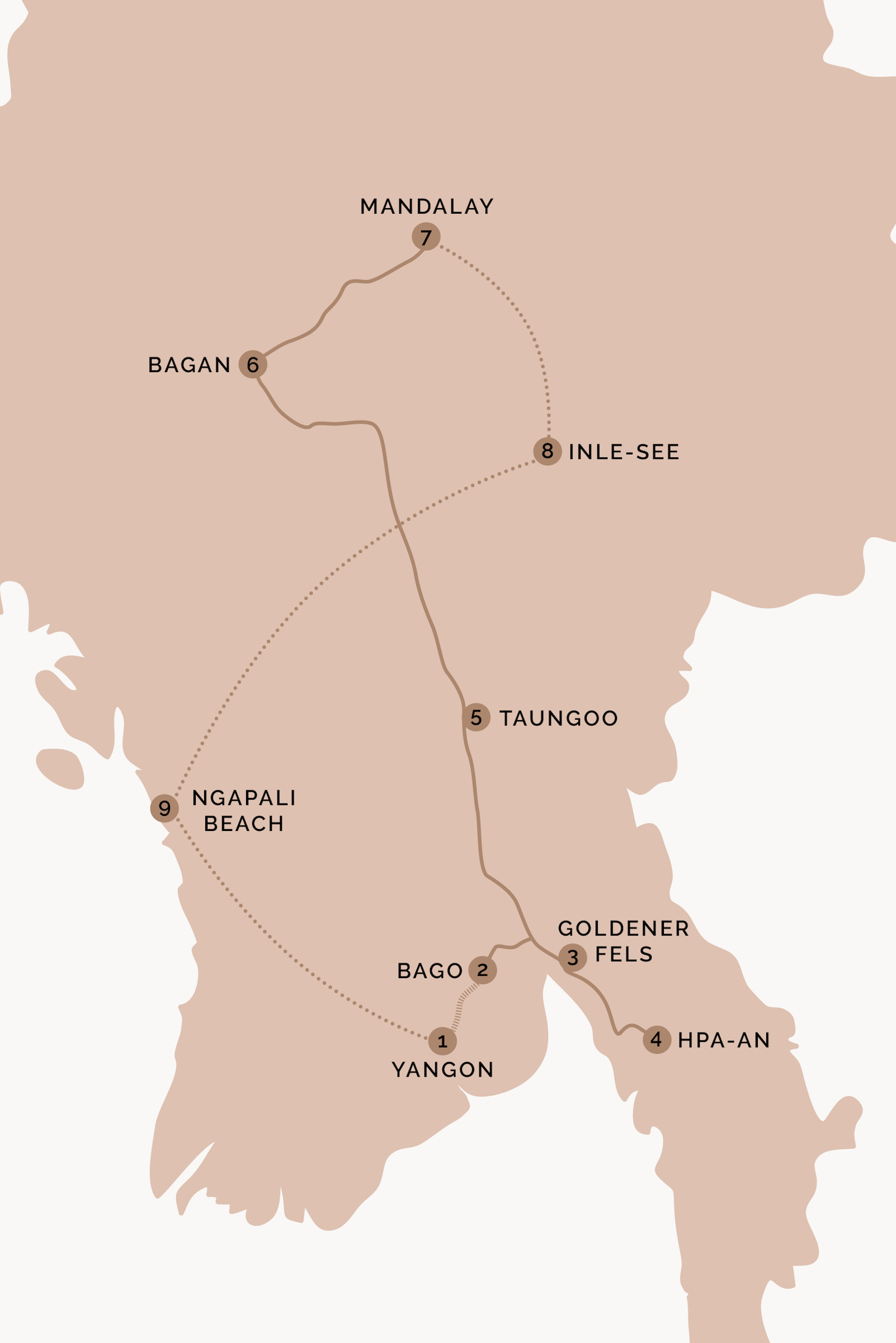 Von Ngapali flogen wir dann über Yangon wieder zurück nach Bangkok. Es hätte auf jeden Fall noch weitere Stopps gegeben, die uns extrem interessiert hätten. Dazu zählen zum Beispiel Myeik im Süden oder auch Mrauk U im Nordwesten des Landes. Dennoch waren wir mit unserer Reiseroute durch Myanmar mehr als zufrieden und können unsere Route (auch retrospektiv) jedem ans Herz legen, der das erste Mal durch Myanmar reist.