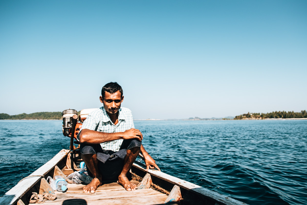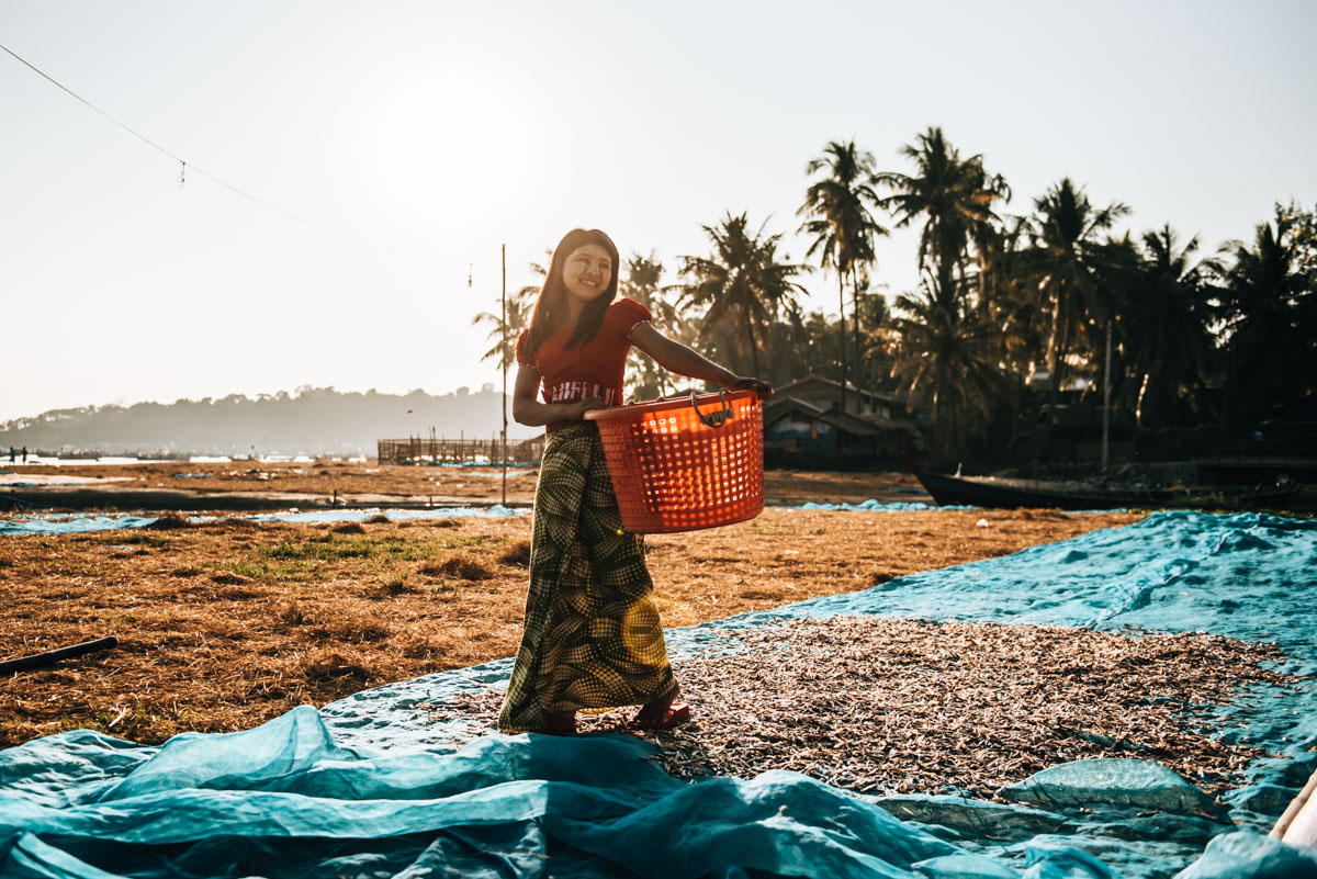 Nach dem Schnorcheln fuhr unser Bootsfahrer mit uns einmal durch den Hafen des Fischerdorfes Gyeiktaw. Wir hatten das Dorf zwar schon am Vortag mit dem Moped durchquert, fanden aber die Sicht vom Wasser aus auch sehr spannend. Der letzte Stop war die vorgelagerte Insel namens Pearl Island. Schade, dass dort vergleichsweise viel Menschen waren, aber ansonsten war der Strand dort unglaublich paradiesisch.