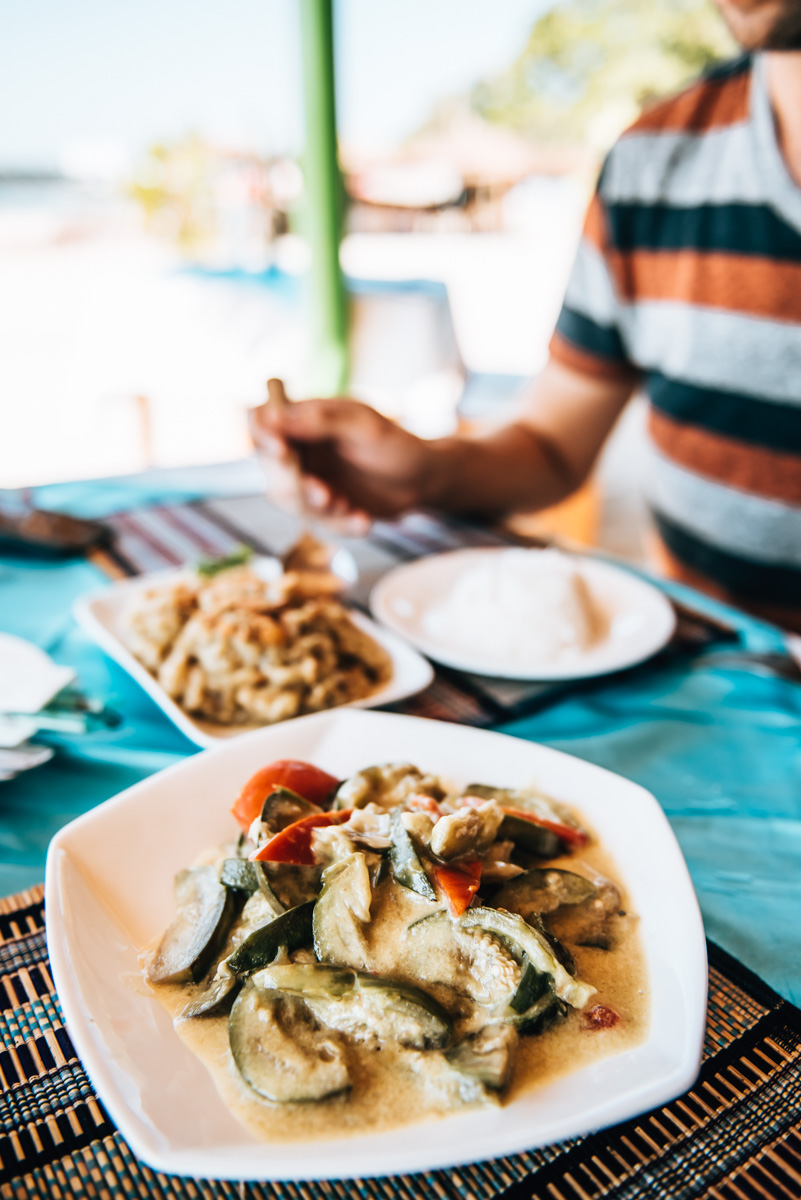 Wir haben einige Strandrestaurants getestet und obwohl es uns überall sehr gut geschmeckt hat, war das „Sunset View Beach Bar & Restaurant“ unser Favorit. Das Eggplant Curry mit Kokosmilch war fantastisch! Das Restaurant ist sehr preiswert: Wir haben oft nur um die 10.000 Kyat (6 Euro) für uns beide bezahlt.