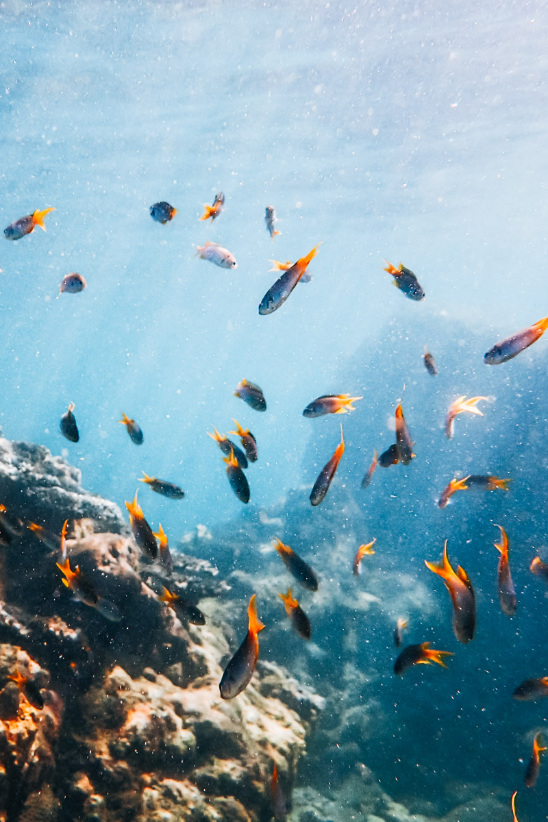 Wir starteten morgens um etwa 9 Uhr und steuerten gleich zu Beginn zwei Schnorchelspots an. Man schnorchelt hier in der Nähe von mehreren Felsen. Ihr dürft euch von der Unterwasserwelt nicht allzuviel erwarten, denn es gibt nur wenige Korallen und von denen sind die meisten abgestorben. Dafür haben wir jede Menge, teils sehr bunte Fische gesehen.