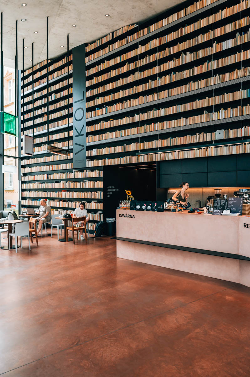 Café Litera: Eine großartige Location für ein Café ist diese Bibliothek, die als modernder Neubau an die historische Rote Kirche alle Blicke auf sich zieht. Hier sitzt du vor einer riesigen Bücherwand. Der Kaffee schmeckt ebenfalls ausgezeichnet. Unbedingt einen Zwischenstopp wert.