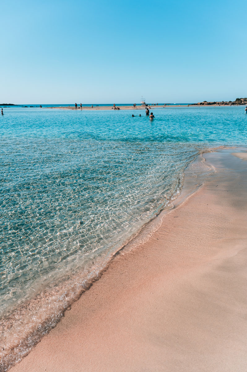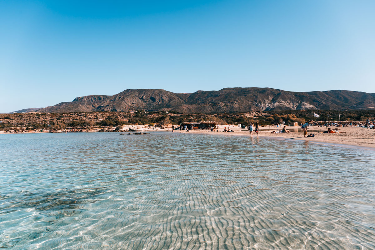 Ein kleines Stück Malediven mitten in Europa – das erwartet dich in Elafonisi. Elafonisi ist eine kleine, vorgelagerte Insel. Das Wasser zwischen Festland und Insel ist so seicht, dass du an vielen Stellen durchwaten kannst. Je nach Wasserstand werden auch Sandbänke freigelegt, sodass die Kulisse tatsächlich an eine Lagune in der Südsee erinnert.