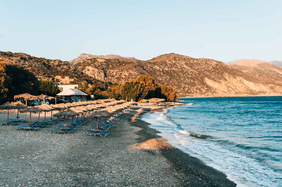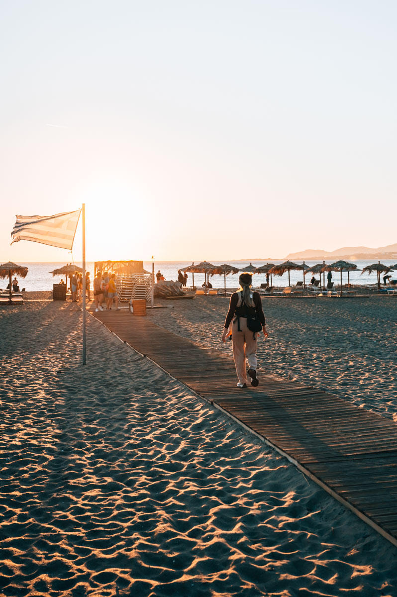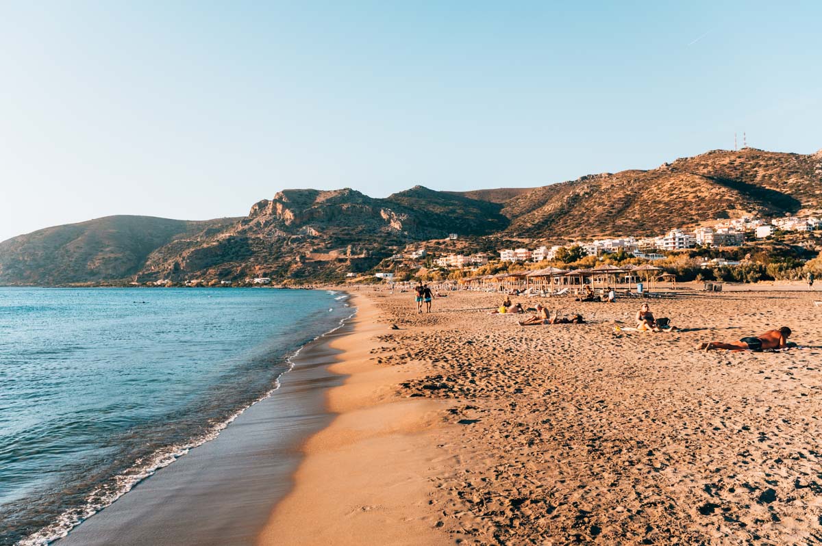 Trotz der Liegen wirkt der Strand nie überfüllt, weil er so breit ist und du jederzeit auch einen Platz abseits für dein Handtuch findest, solltest du das präferieren. Wichtig zu wissen ist, dass es mitunter (wie auf ganz Kreta) etwas windig sein kann. Hier musst du ein wenig auf dein Wetterglück hoffen.