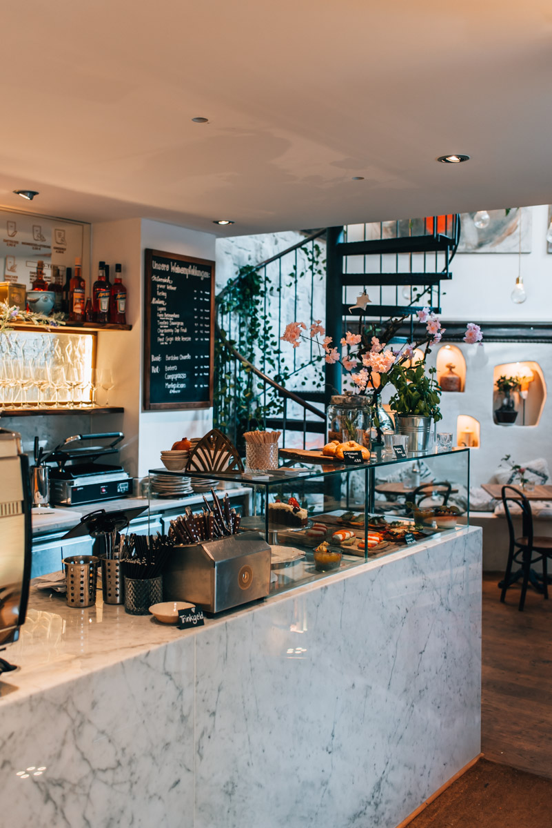 Im Minoo kannst du köstlich und sehr ausgiebig frühstücken, aber auch zum Mittagessen oder einfach nur für Kaffee und Kuchen vorbeischauen. Die Küche ist jedenfalls eine Fusion aus europäischen und persischen Gerichten – die Besitzerin stammt nämlich ursprünglich aus dem Iran.