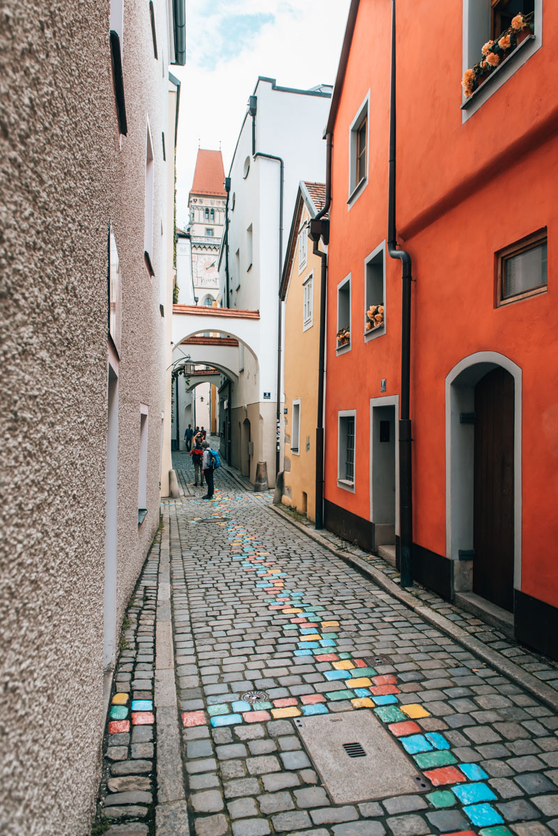 Solltest du aus Österreich bzw. dem Süden Deutschlands kommen, dann wirst du vermutlich mit dem Auto anreisen. Du kannst ziemlich weit Richtung Altstadt hineinfahren und dein Auto dann an einem der Parkplätze bzw. Parkhäuser abstellen. Wir haben bei den Parkplätzen an der Schanzlbrücke geparkt. Nur wenige Minuten zu Fuß von dort bist du bereits mitten im Herzen der Altstadt.