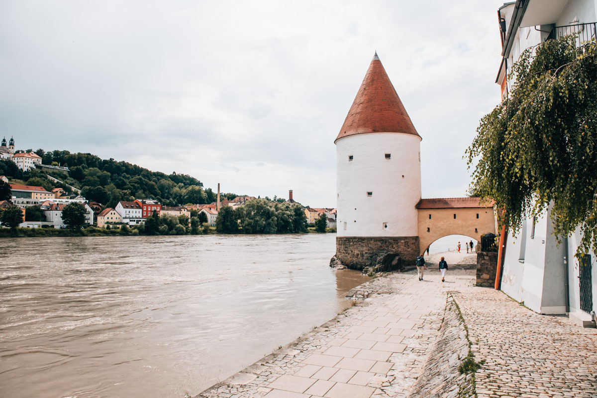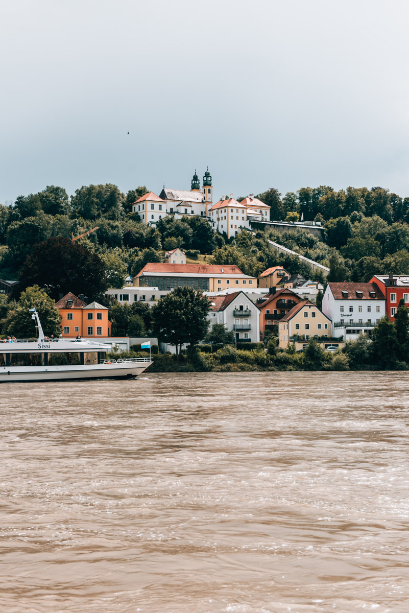 Je nach Wetterlage ist das Ganze ein ziemliches Naturspektakel – insbesondere wenn der grüne Inn und die blaue Donau zusammenfließen. Bei uns gab es die Tage zuvor recht heftige Regenfälle, sodass die unterschiedliche Wasserfärbung nur bei näherem Betrachten sichtbar war.