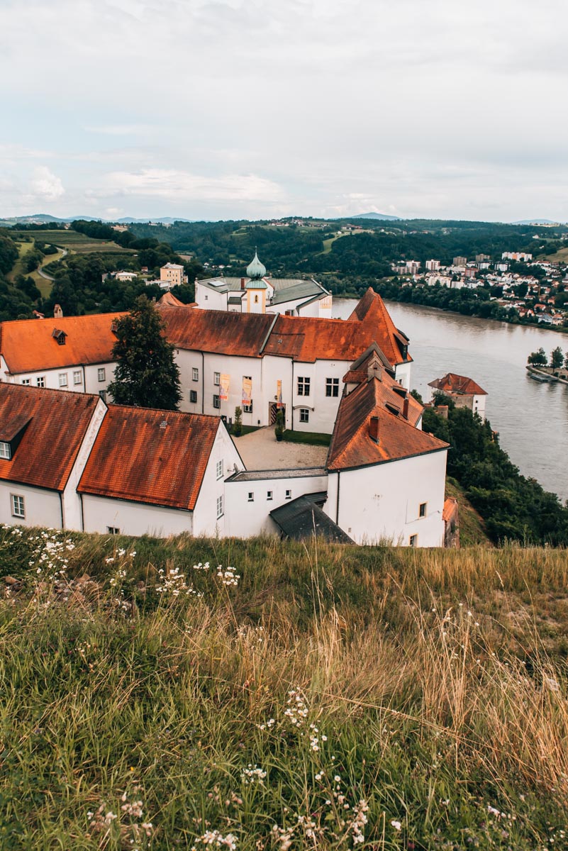 Die zweite wichtige Sehenswürdigkeit in Passau ist die mächtige historische Burganlage namens Veste Oberhaus. Sie thront weithin sichtbar am linken Donauufer auf einem Hügel, dem Georgsberg. Ein Spaziergang in die Höhe zur Veste Oberhaus gehört unserer Meinung nach zum Pflichtprogramm bei einer Passau-Städtereise.