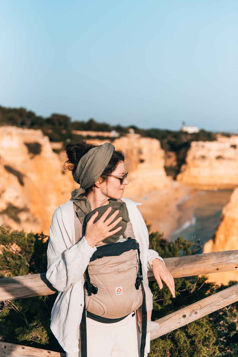 Wir selbst haben unser Baby ausschließlich getragen. Wir nutzen hierfür die Ruckeli-Trage. Welche Babytrage zu euch passt, ist aber sehr individuell! Mit unserem Tragebaby konnten wir jedenfalls alles machen, was wir auch ohne Baby gemacht hätten – vom Besteigen des Kirchturms in Porto bis hin zur kurzen Küstenwanderung an der Algarve.