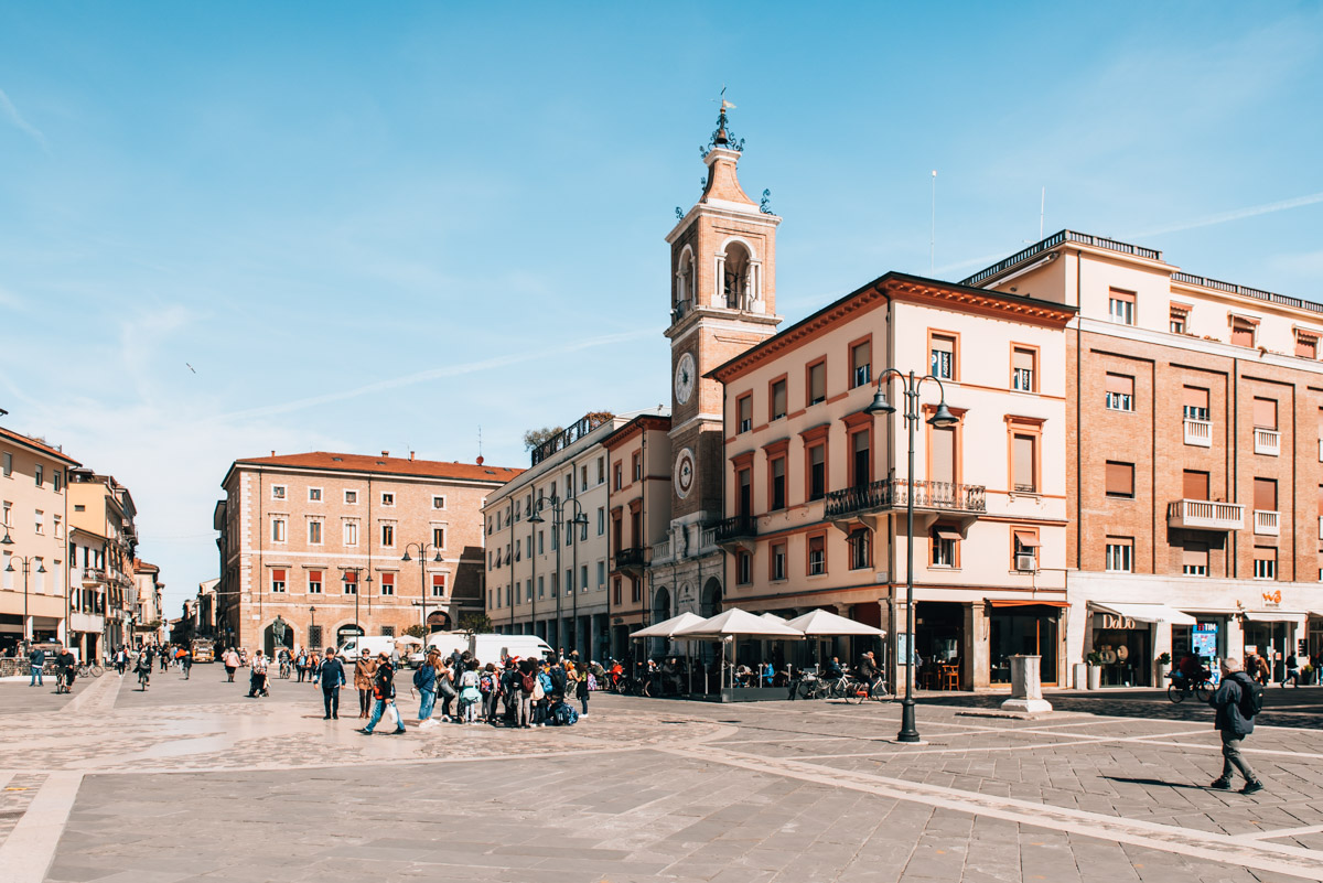Die beiden Hauptplätze in Rimini sind die Piazza Tre Martiri sowie die nahegelegene Piazza Cavour. Beide befinden sich im Herzen der Altstadt und sind kaum zu verfehlen, denn sie liegen direkt an der wichtigsten Flaniermeile Riminis, dem Corso d’Augusto.