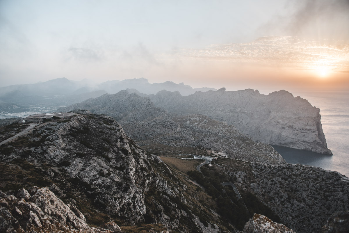 Hier tummeln sich aus gutem Grund meist sehr viele Menschen, doch für den Sonnenuntergang haben wir noch einen Geheimtipp für dich. Vom Mirador Es Colomer verläuft eine unscheinbare Bergstraße noch weiter in die Höhe zum Wachturm Talaia d’Albercutx. Wir behaupten mal, dass man von hier den spektakulärsten Ausblick ganz Mallorcas hat – der perfekte Ort, um die Sonne untergehen zu sehen.