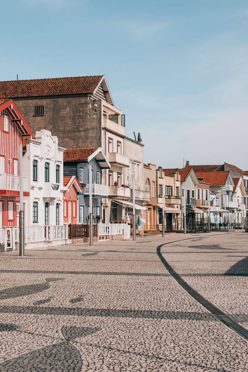 Als Tagesausflug von Aveiro (oder natürlich als nächster Stopp der Rundreise durch Centro de Portugal) lohnt sich eine Fahrt an die Küste. Gerade einmal 15 Minuten von Aveiro entfernt befindet sich Costa Nova. Der Küstenort ist vor allem aufgrund seiner bunt gesteiften Häuser entlang der Uferpromenade bekannt, welche ursprünglich von Fischern als Geräteschuppen genutzt wurden.