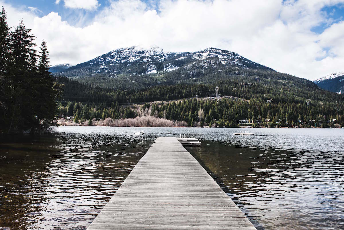 Ist das etwa ein Sonnenstrahl, der da aus den Wolken hervorblitzt? Wenn uns Kanada eines lehrt, dann, dass sich das Wetter im Stundentakt um 180 Grad wenden kann. Während unsere Finger am Gipfel der Sea to Sky Gondola kurz vorm Erfrieren waren, so genießen wir am Ufer des Alta Lakes nahe Whistler Frühlingswetter.
