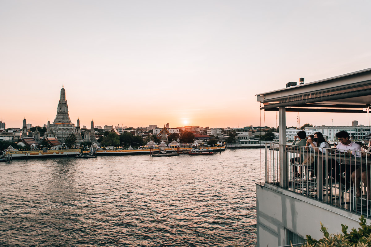Ein richtig tolles Plätzchen zum Sonnenuntergang ist die Rooftop Bar des Hotels Sala Rattanakosin. Die Besonderheit: Du blickst von hier direkt auf den majestätischen Wat Arun. Die Sonne geht hinter dem Tempel unter – was für ein Blick!