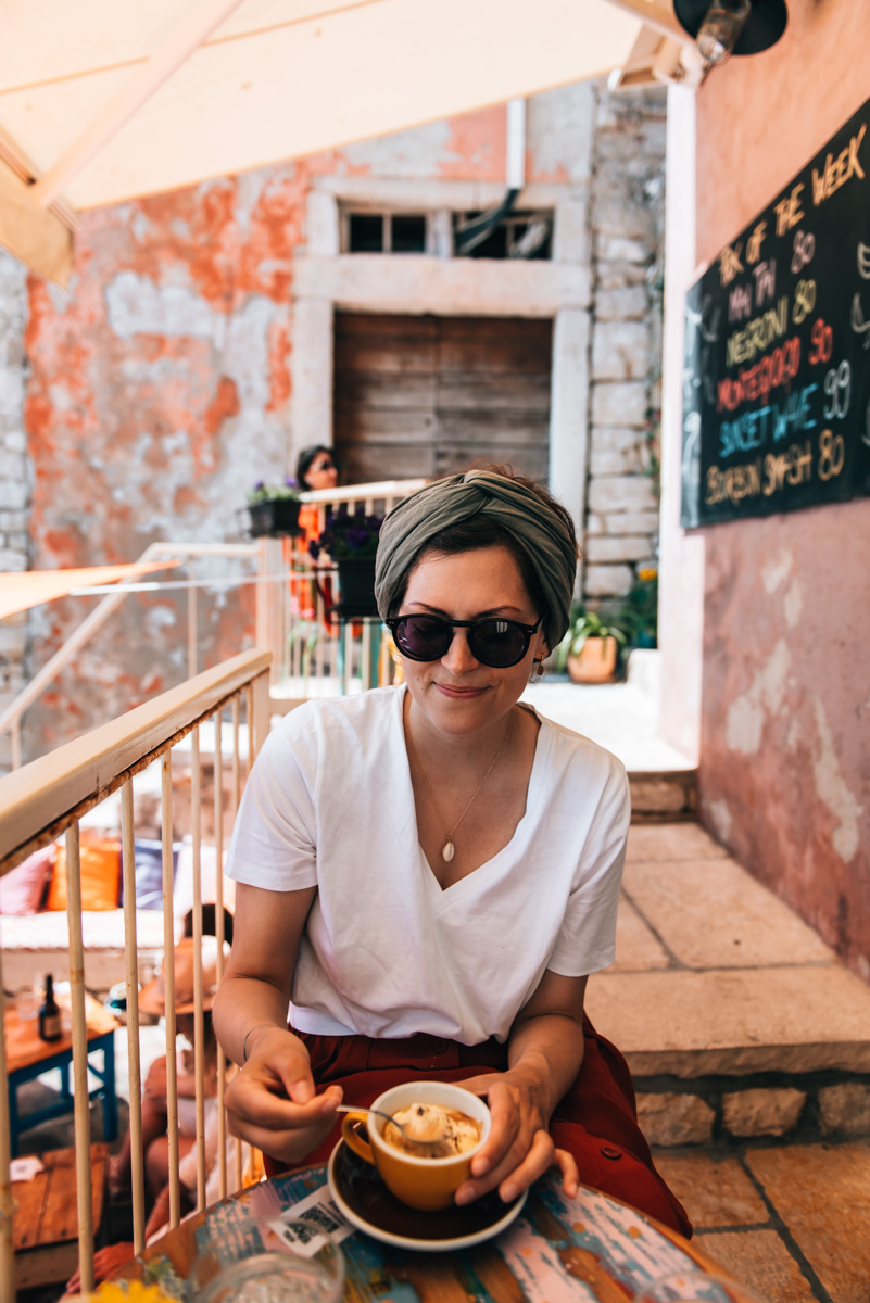 Mediterraneo Bar: Wir lehnen uns mal weit aus dem Fenster und behaupten, dass die Mediterraneo Bar die mit Abstand coolste Bar Rovinjs ist. Du sitzt hier direkt an der Steinküste mit Blick aufs Wasser. Was uns neben dem fantastischen Ambiente sehr glücklich gemacht hat: Hier gibt’s ausgezeichneten Affogato. Die Cocktails sollen ebenfalls vorzüglich sein. Ganz klare Empfehlung und ein richtiger Geheimtipp in Rovinj!