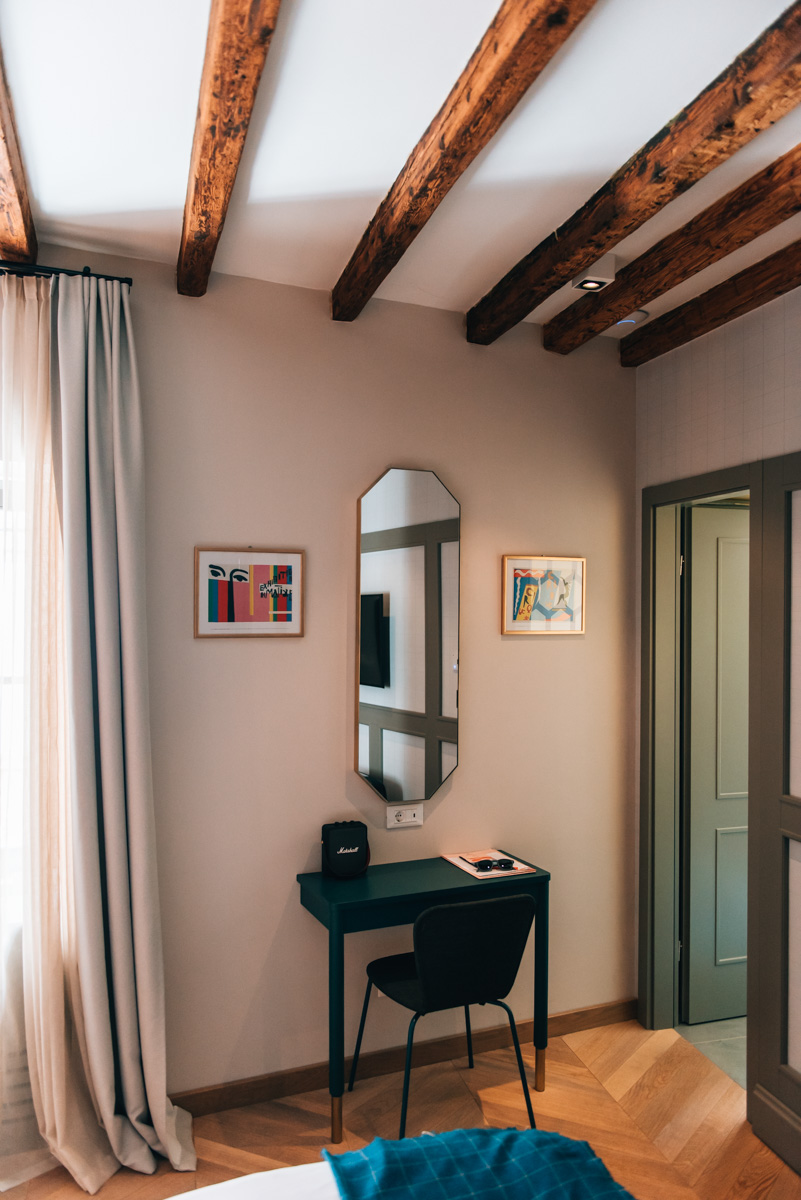 Was dich hier erwartet? Ein behutsam renoviertes Schmuckstück mitten im historischen Zentrum. Jedes Zimmer ist individuell gestaltet und unglaublich detailverliebt und hochwertig eingerichtet. Wir selbst waren in einem Zimmer der Kategorie Luxe Room untergebracht (= „Deluxe Zweibettzimmer im Nebengebäude“), das wir wärmstens empfehlen können.