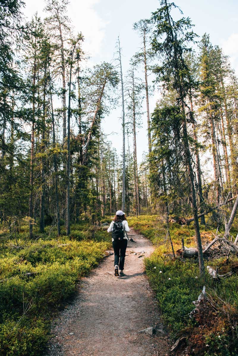 Gut zu wissen: Der Weg ist als Rundweg angelegt. Folge einfach der grünen Markierung und du landest schließlich wieder auf dem Parkplatz. Wichtig zu wissen ist, dass hier auch der Weitwanderweg „Karhunkierros“ verläuft. Diesen Schildern also bitte nicht folgen.