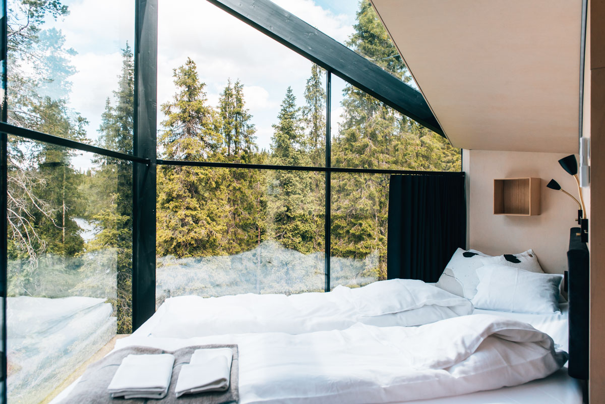 In einem Waldstück am Ufer eines Sees, in absoluter Abgeschiedenheit, befinden sich diese modernen Glasiglus. Dank der gewaltigen Panoramafenster hat man wirklich das Gefühl, mitten in der Natur zu schlafen. Das Flair ist so unglaublich!