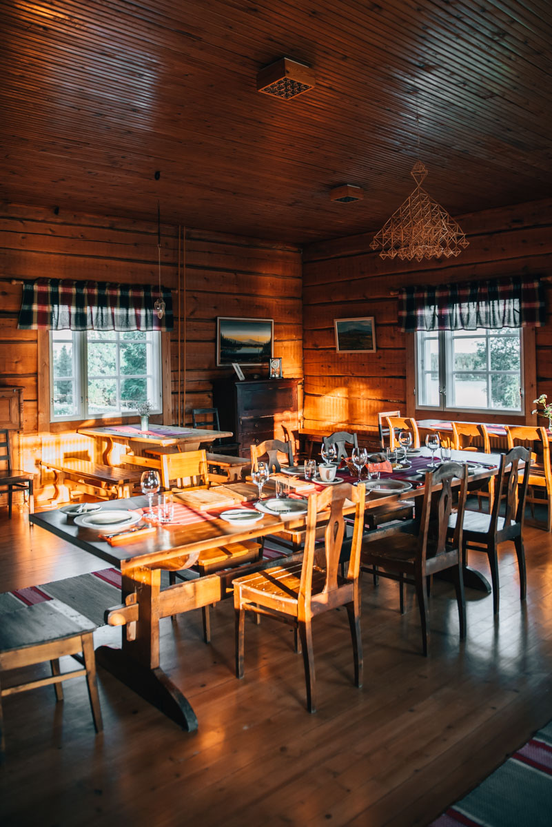Im Anschluss an den Saunagang geht es im historischen Haupthaus weiter. Dort hat Ehemann Matti nämlich parallel schon das Abendessen zubereitet. Und da hat’s uns dann endgültig die Sprache verschlagen. Allein das Setting im holzvertäfelten Raum ist so besonders – das muss man einfach erlebt haben!