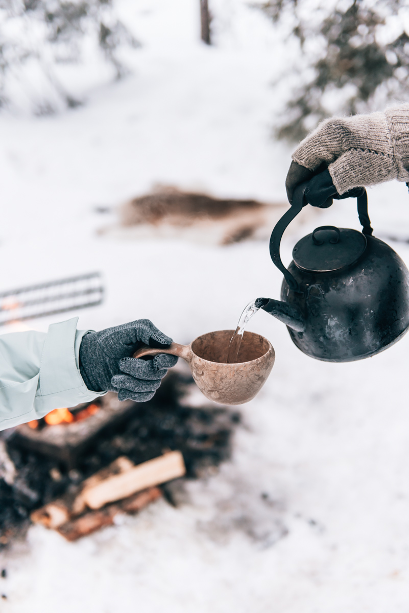 Neben dem Kamin war die private Sauna klar unser Highlight. Es gibt einfach nichts Schöneres in Lappland, als sich nach einem langen Tag in der Kälte abends in der Sauna aufzuwärmen und anschließend eine heiße Tasse Tee vor dem Kamin zu schlürfen. So gemütlich!