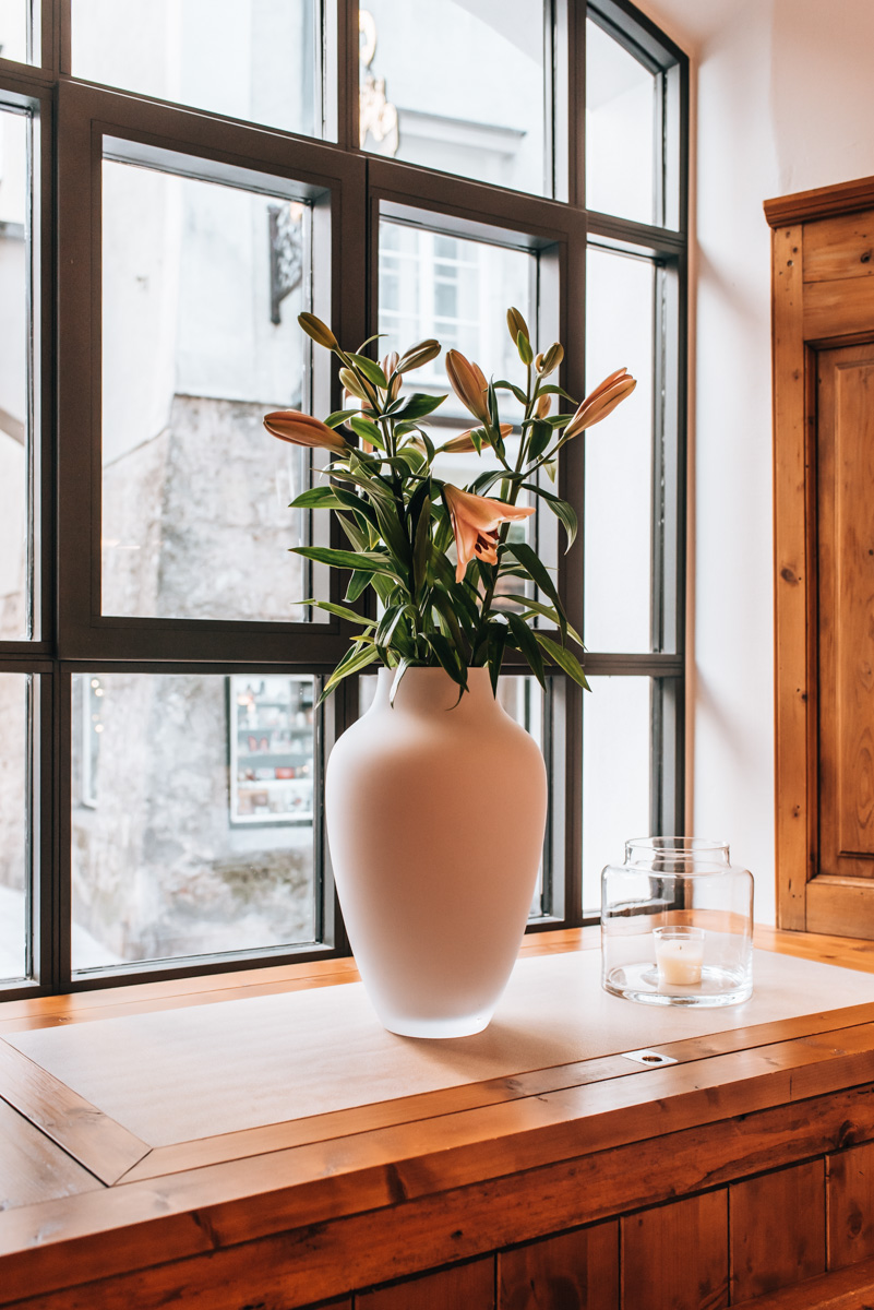 Übernachtet haben wir im Arthotel Blaue Gans, das wir dir sehr empfehlen können. Zentraler könnte das Hotel kaum gelegen sein: Von unserem Fenster blickten wir direkt auf die Getreidegasse. Was das Boutique-Hotel besonders macht? Es befindet sich in einem historischen Gebäude. Die Zimmer sind dementsprechend eher klein, aber dafür sehr gemütlich eingerichtet.