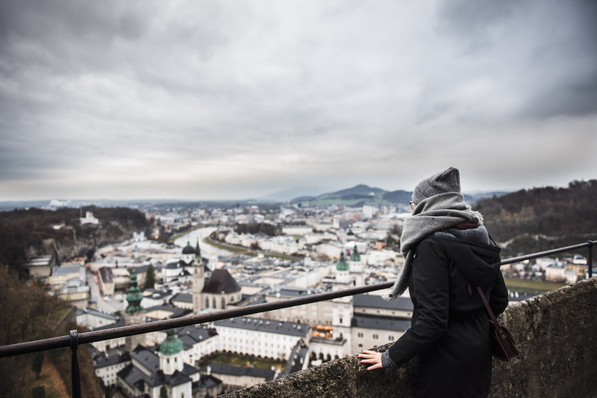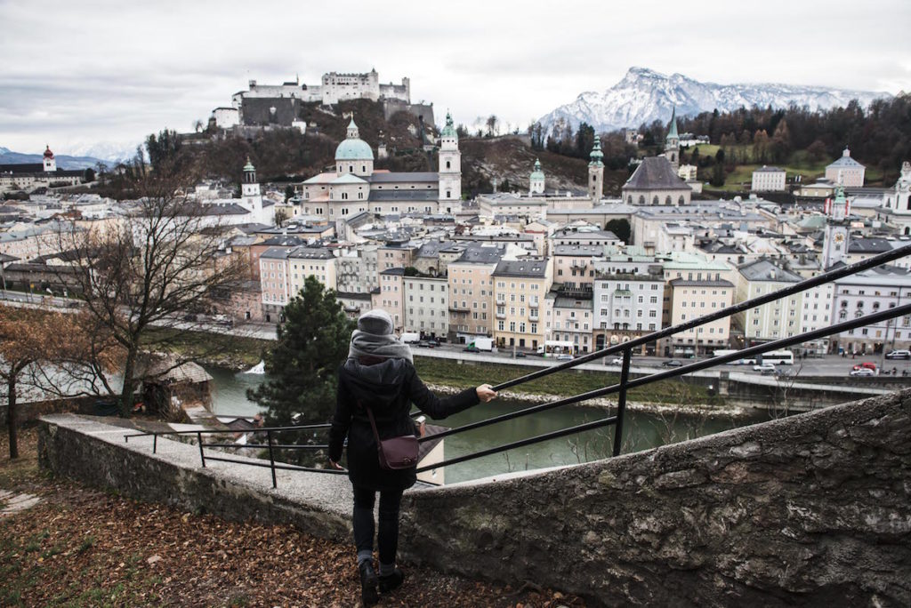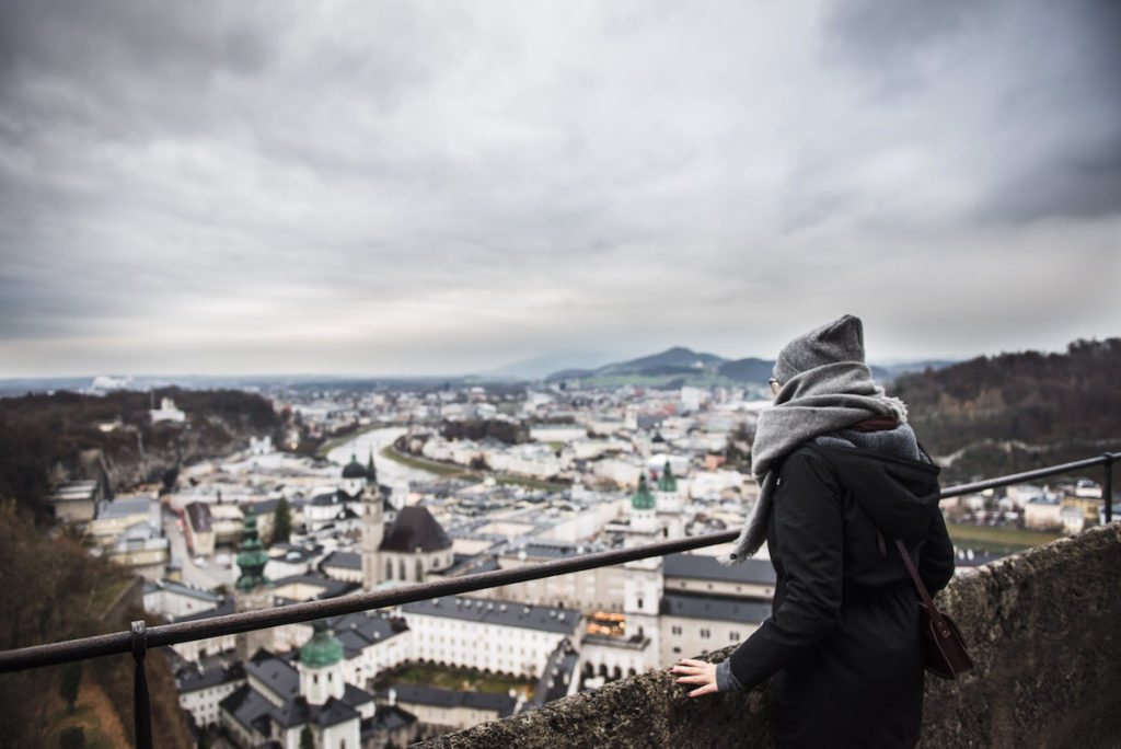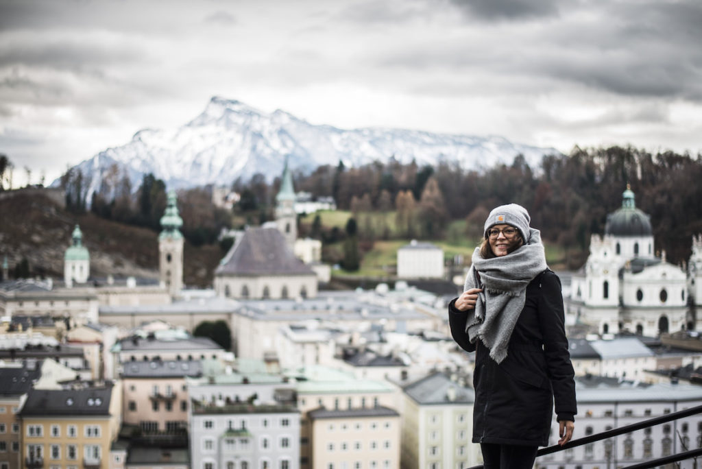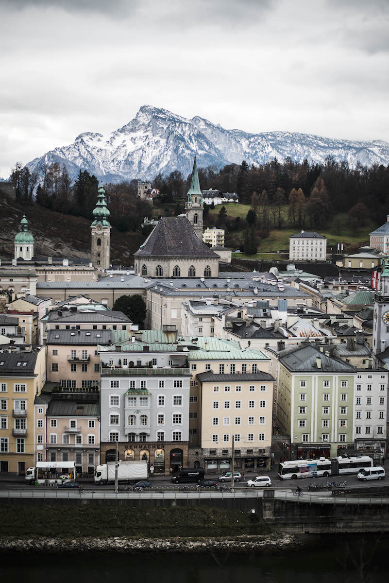 Der Kapuzinerberg ist einer der Salzburger Hausberge. Von hier oben hast du einen fantastischen Blick auf die Salzburger Altstadt samt Festung Hohensalzburg. Besonders großartig ist der Ausblick im Winter: Die verschneiten Berggipfel am Horizont tauchen das Panorama in ein völlig neues Licht. Fehlt nur noch, dass auch die Dächer mit Schnee bedeckt sind – hach!