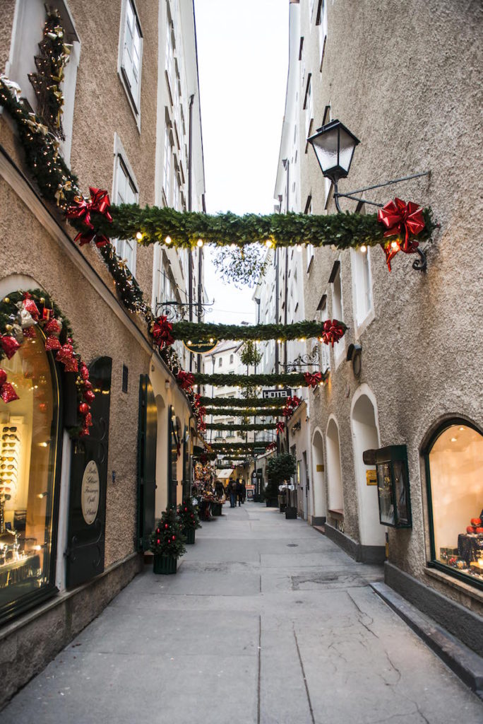 Salzburgs Innenstadt ist ja ohnehin schon kitschig schön, aber der Advent setzt dem Ganzen noch eins drauf. Eine derart festlich geschmückte Innenstadt haben wir überhaupt noch nie gesehen. Sehr sehenswert ist beispielsweise die schmale Goldgasse oder natürlich auch das Herzstück der Altstadt: die Getreidegasse.