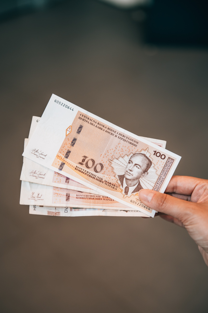 Wichtiger Hinweis: Beim Abheben können Spesen bzw. Gebühren fällig werden. In Bosnien betrug die Gebühr fürs Abheben bei uns umgerechnet ungefähr 3 Euro. Eine Alternative zum Geldabheben ist das Geldwechseln. Das würden wir immer vor Ort machen – also nicht schon im Heimatland, denn dort erhältst du üblicherweise einen viel schlechteren Wechselkurs.