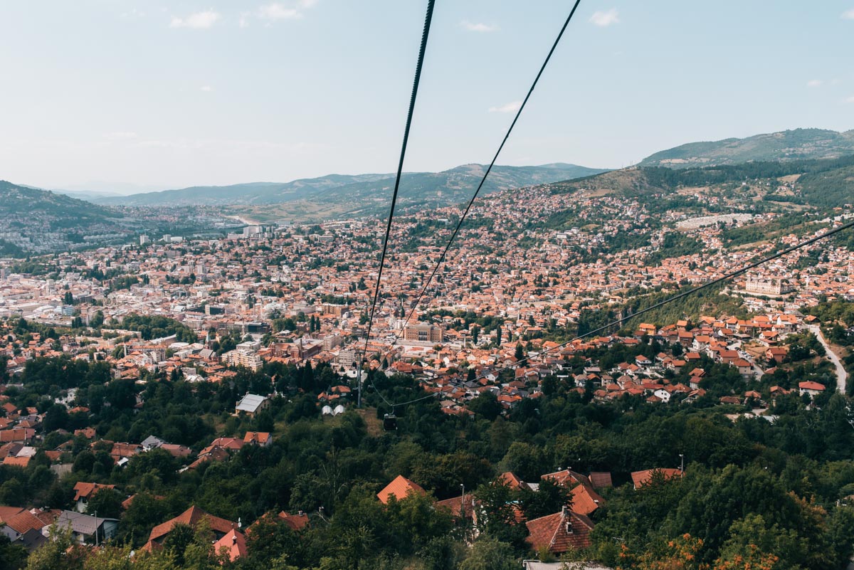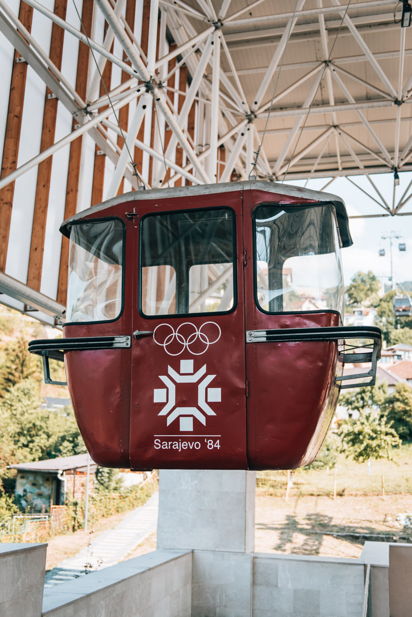 Seit 2018 kannst du mit der Seilbahn wieder auf den Trebević fahren. Los geht’s an der Talstation, welche sich nur einen kurzen Fußmarsch (und Anstieg!) vom Zentrum entfernt befindet.
