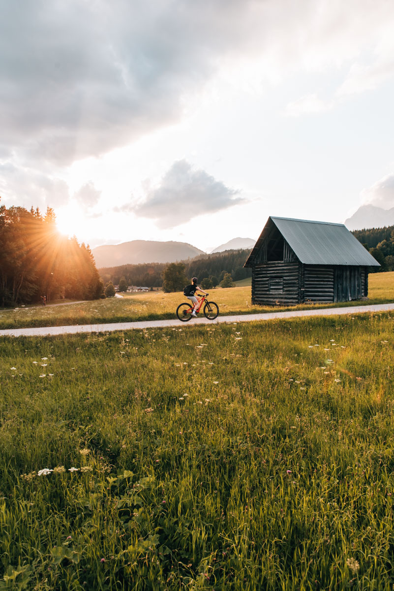 Beginnen wir mit der unserer Meinung nach schönsten und gemütlichsten Art und Weise, Schladming auf zwei Rädern zu erkunden: Mit dem E-Bike. Es gibt unzählige Routen jeglicher Schwierigkeitsstufe. Unsere Wahl fiel auf die sogenannte Sonnseitnrunde, eine einfache, rund 26 Kilometer lange Tour, die direkt in Schladming startet.