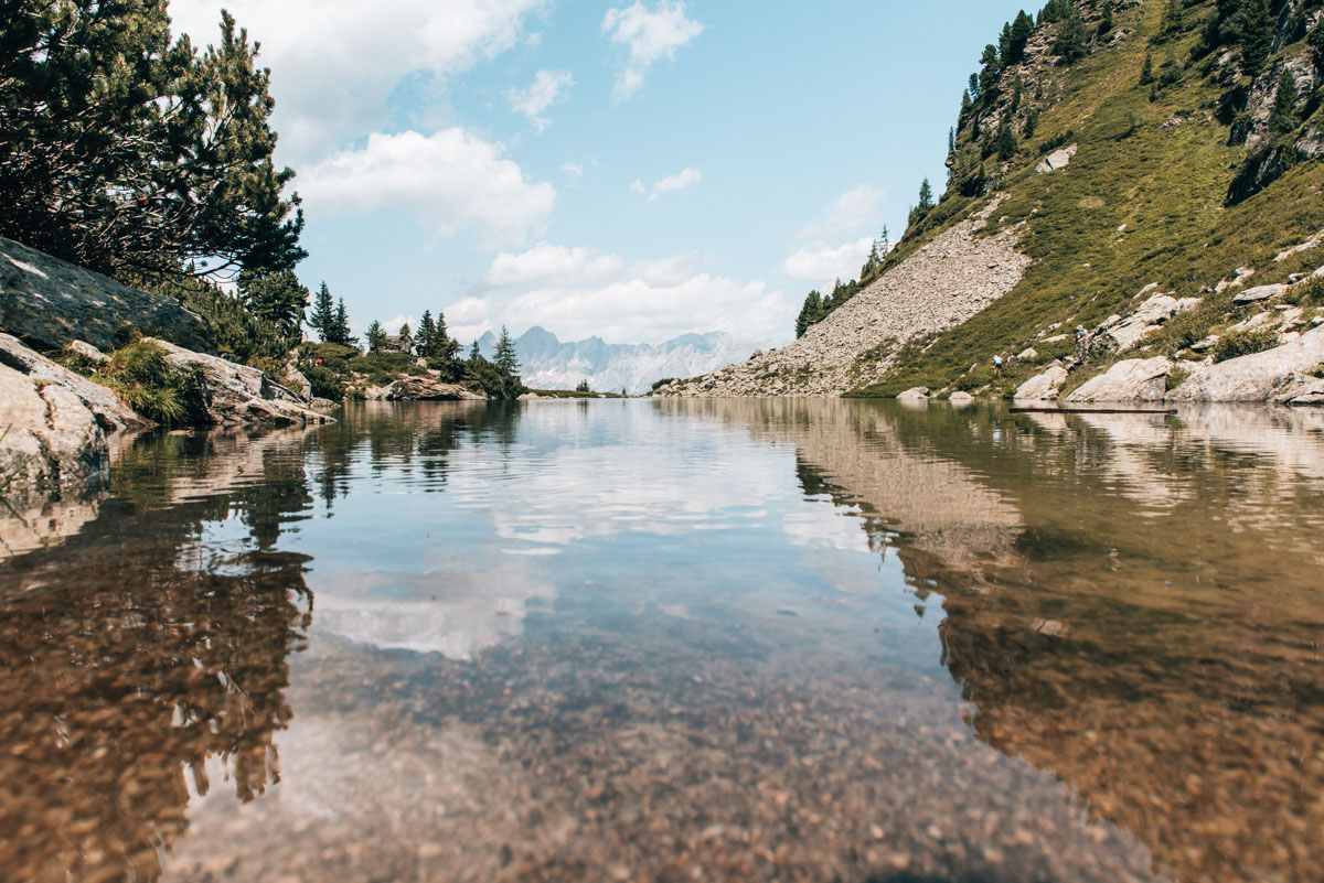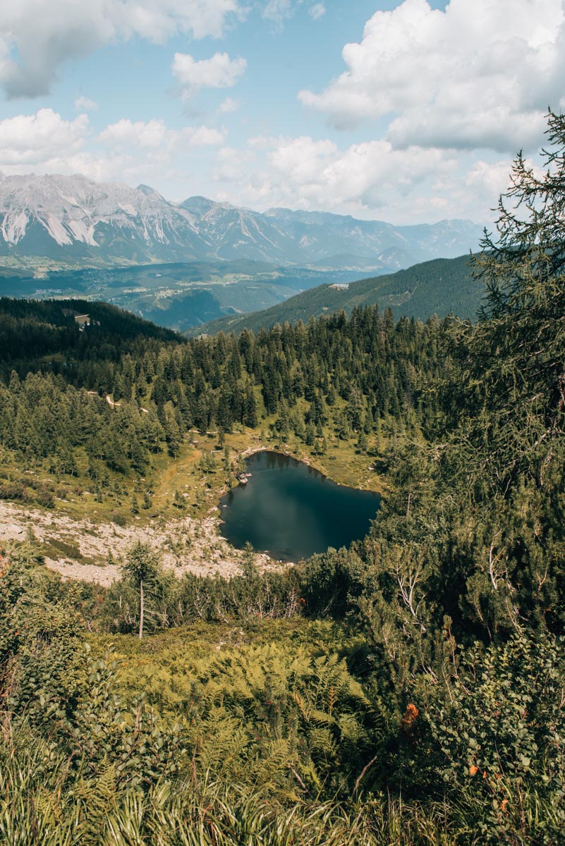 Jetzt kommt der Wermutstropfen an der ganzen Sache: Weil jede*r dieses Schladming-Highlight mit eigenen Augen sehen möchte, gleicht die Wanderung im Hochsommer ein bisschen einem Gänsemarsch. Hinzu kommt, dass der Weg einfach und familientauglich ist. Von der Bergstation sind es gerade einmal 45 Minuten (ca. 300 Höhenmeter), ehe du den Spiegelsee erreichst.