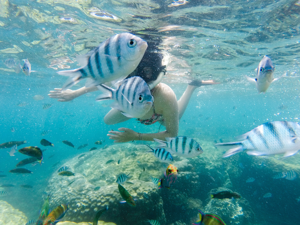 Du hast zwei Möglichkeiten: Entweder du schnappst dir deine Ausrüstung und schnorchelst direkt vom Strand aus. (An vielen Stränden kannst du Schnorchelequipment gegen eine geringe Gebühr leihen.) Oder aber du buchst einen Schorcheltrip, der dich zu den besten Spots führt. Letzteres wäre unsere Empfehlung – nähere Infos zum Schnorchelausflug verraten wir dir gleich.