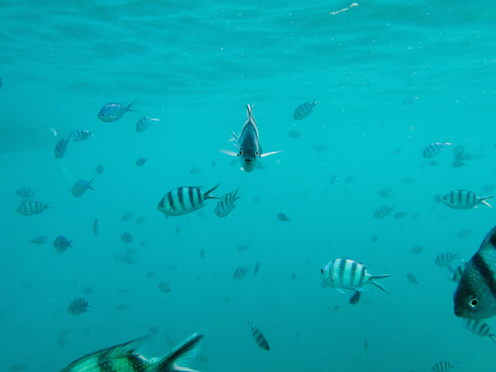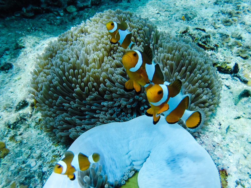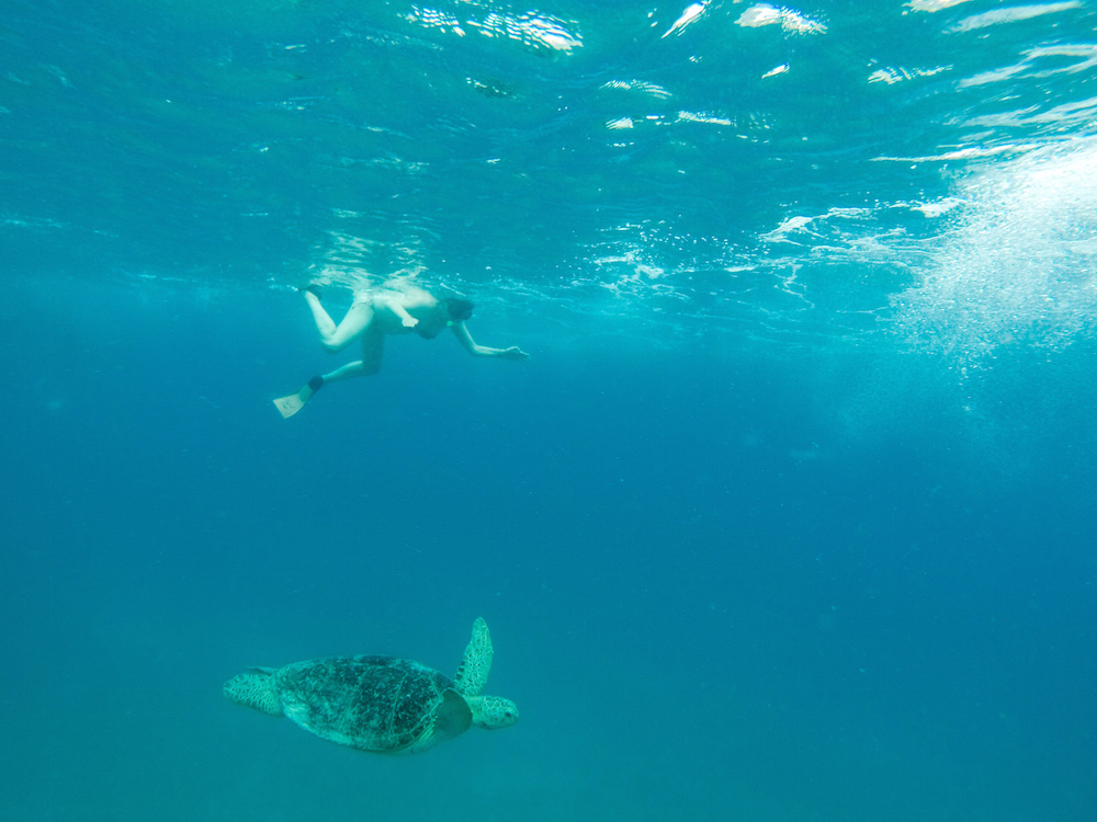 Um ein letztes Resümee abzugeben, wollten wir den Schnorchel-Trip noch abwarten. Und siehe da: dieser Tag hat uns umgestimmt. Da kreuzen Schildkröten und Haie unseren Weg, da schwimmen wir gemeinsam mit bunten Fischschwärmen und treffen auf kleine Nemos. Hier unter Wasser gefällt’s uns jedenfalls besser als an Land.
