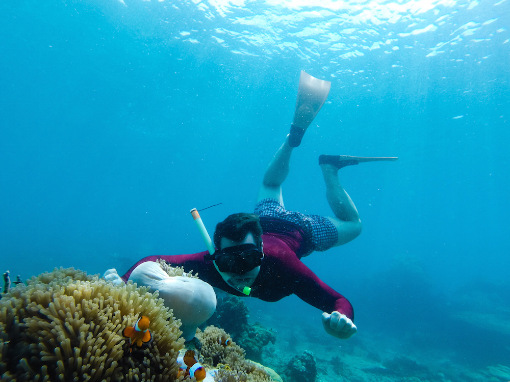 Ganz wichtiger Tipp: Die Sonne ist trotz Wolken erbarmungslos, daher empfehlen wir dir, während des Schnorchelns ein T-Shirt zu tragen (am besten langärmlig). Wir waren leider erst viel zu spät so schlau und hatten danach wochenlang (!) mit einem üblen Sonnenbrand zu kämpfen.