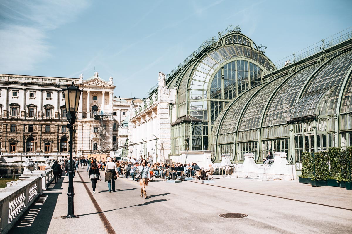 Wenn du die Ringstraße weiter im Uhrzeigersinn läufst, kommst du nach wenigen Minuten zum Burggarten. Dort können wir dir einen kurzen Zwischenstopp sehr empfehlen. Im Palmenhaus kannst du dich bei Kaffee und Kuchen stärken.
